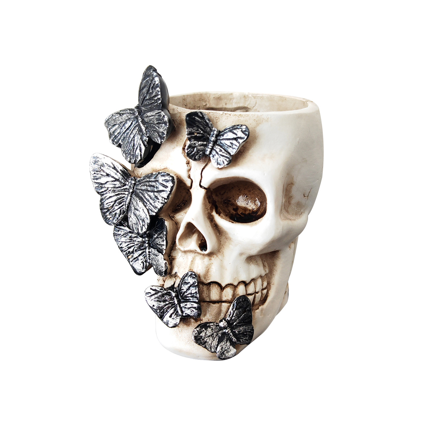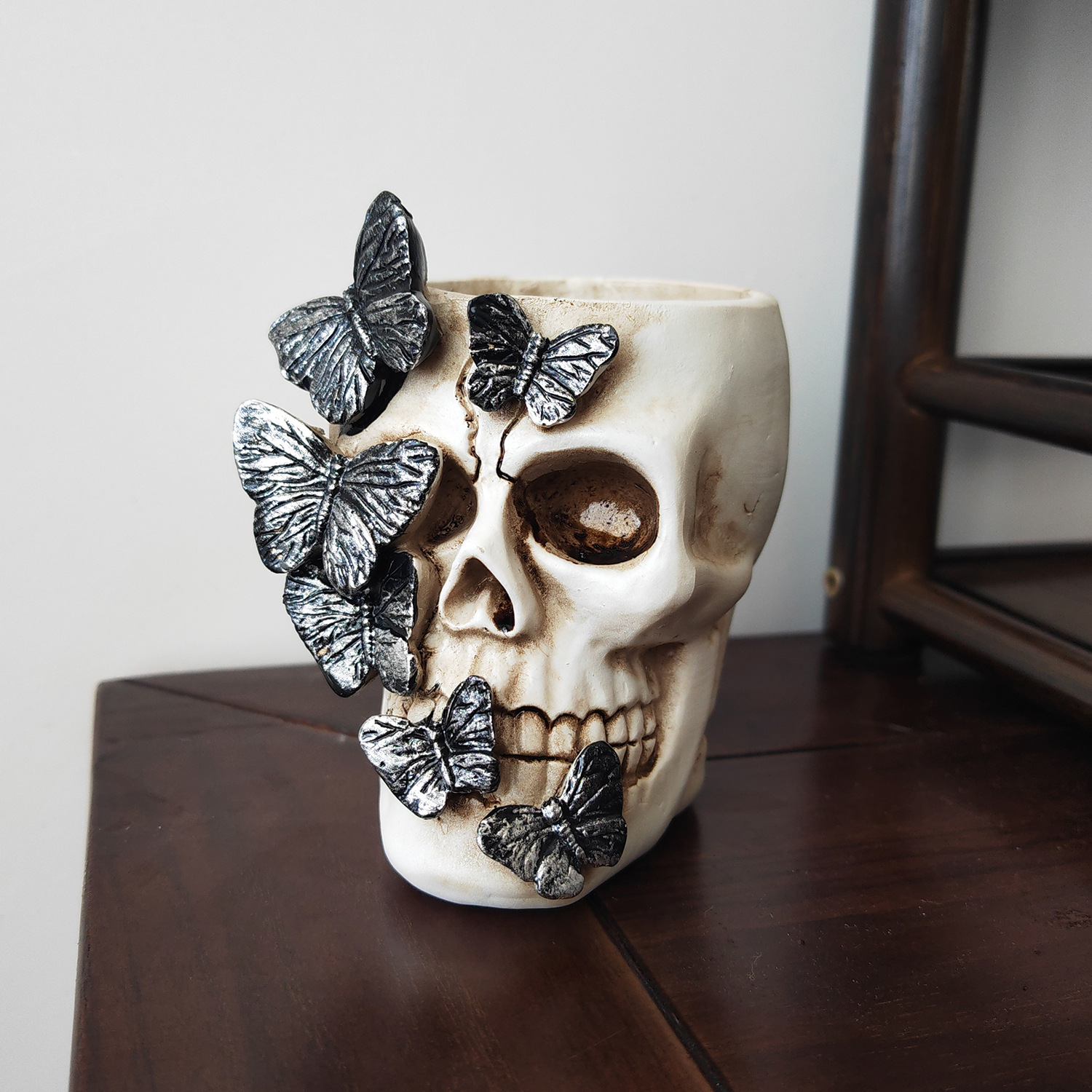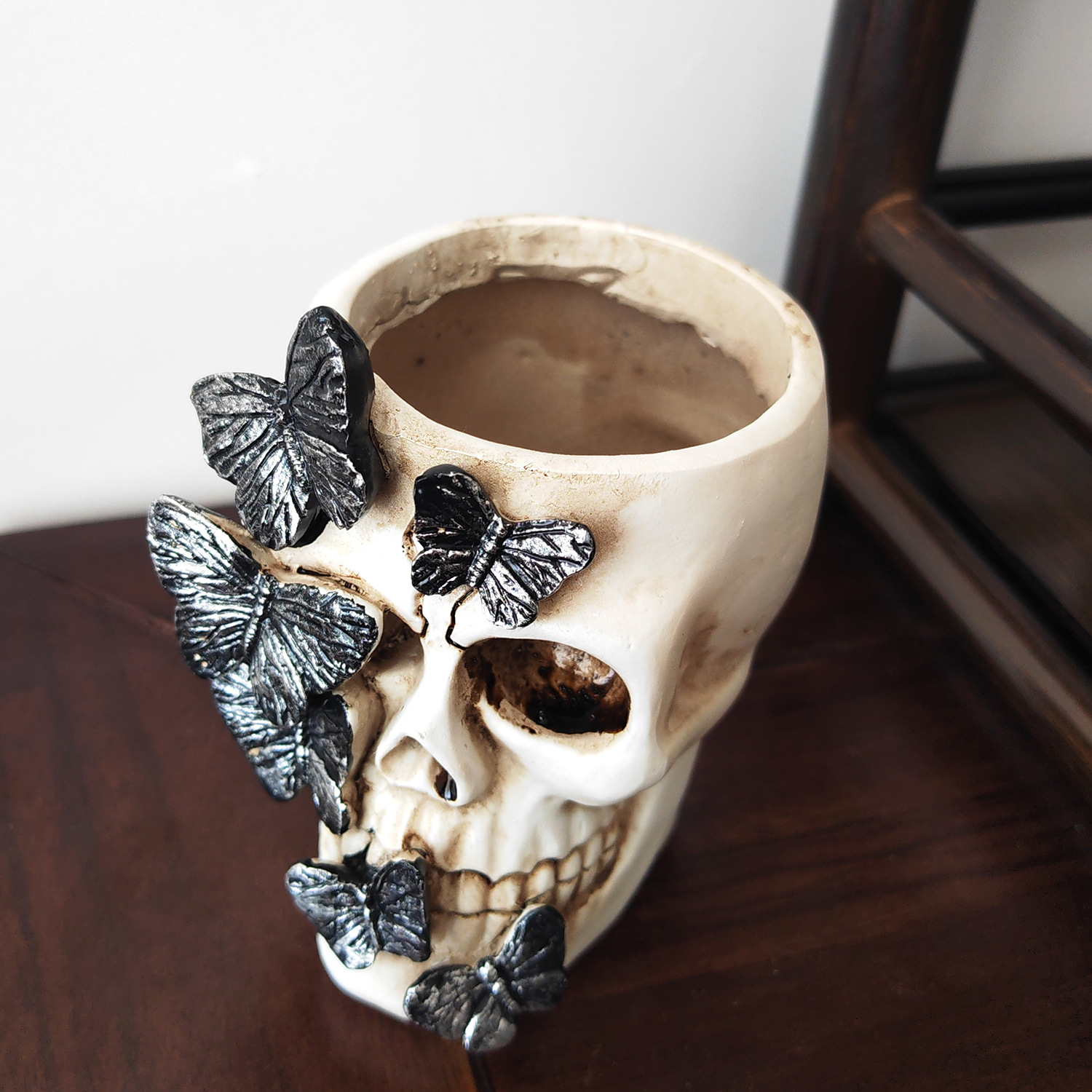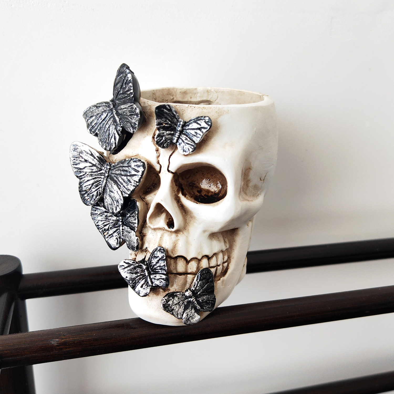국경 간 할로윈 두개골 장식 유령 축제 파티 나비 두개골 장식품 펜 케이스 수지 공예