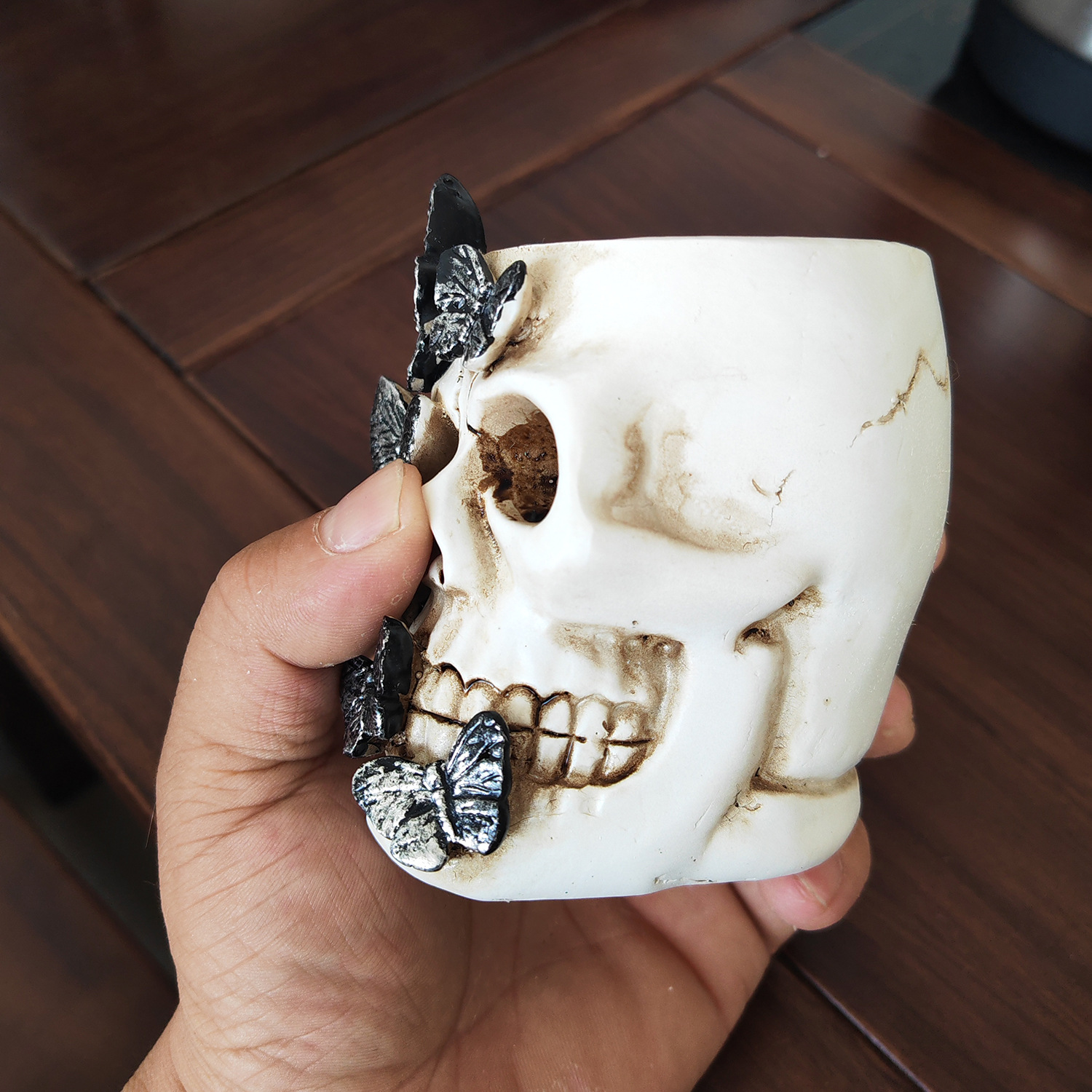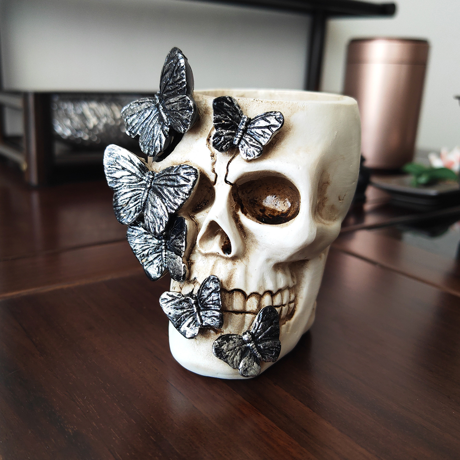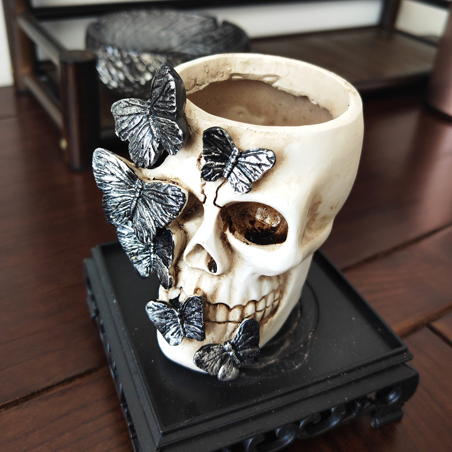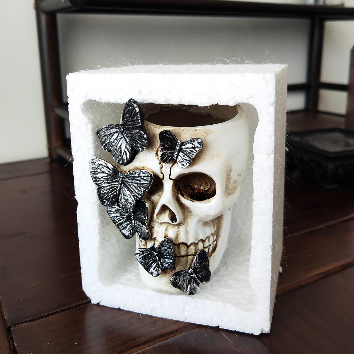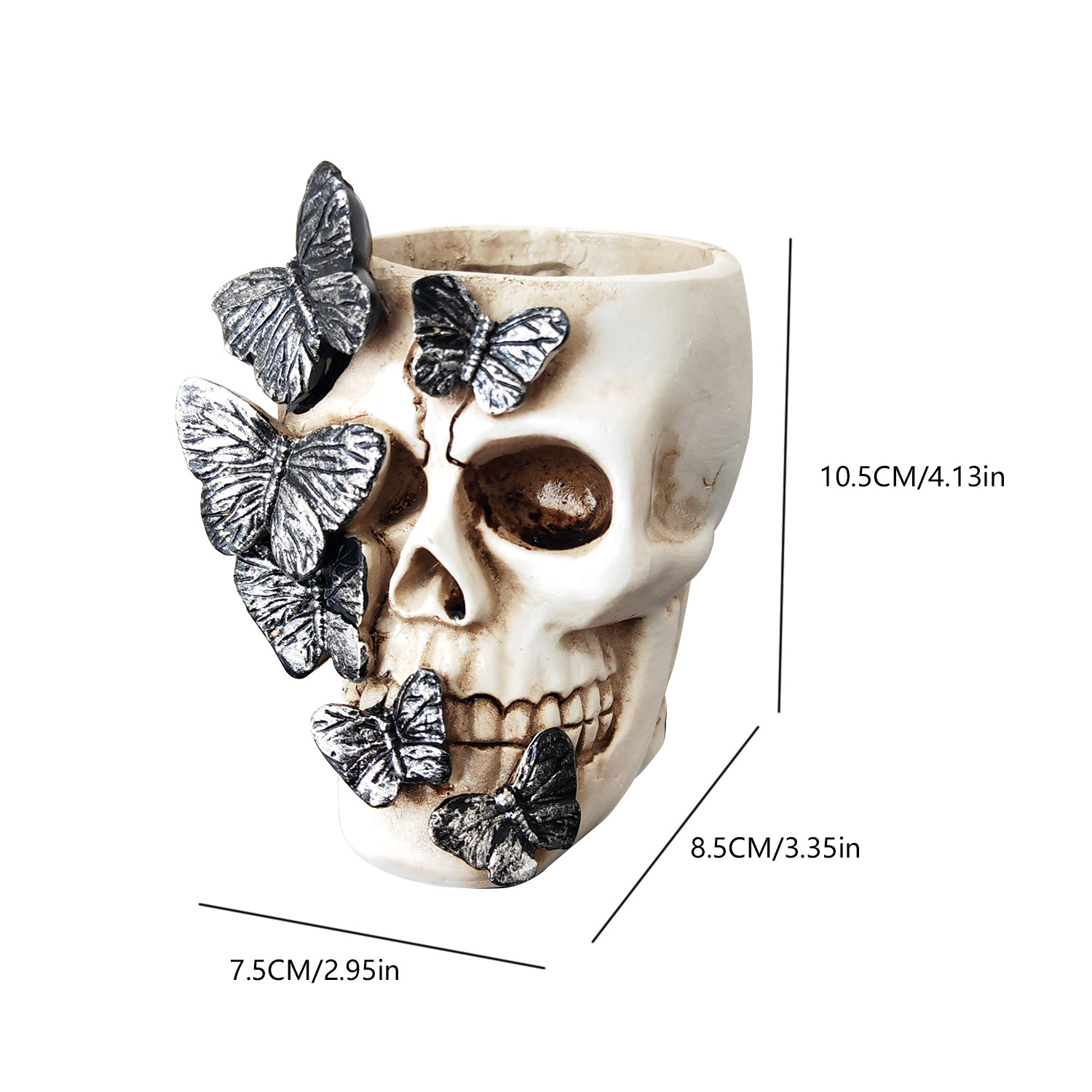 국경 간 할로윈 두개골 장식 유령 축제 파티 나비 두개골 장식품 펜 케이스 수지 공예