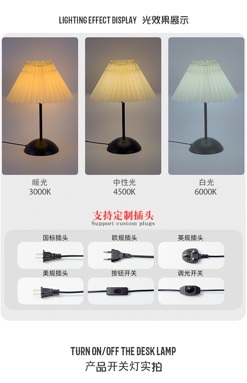 북유럽 스타일 레트로 테이블 램프 미국식 금속 기숙사 침실 잠자는 침대 옆 램프 주름 우산 밤 빛 분위기