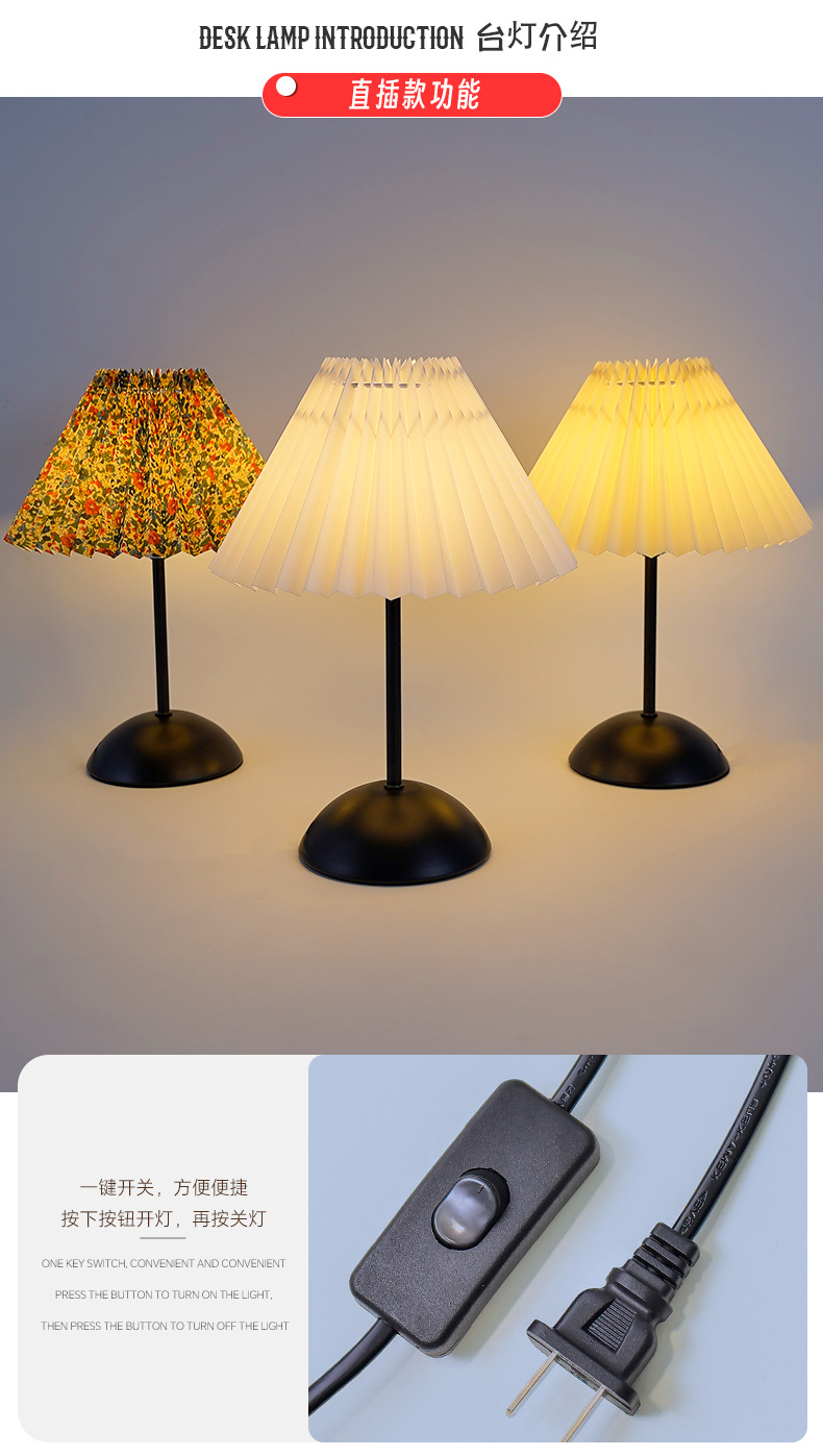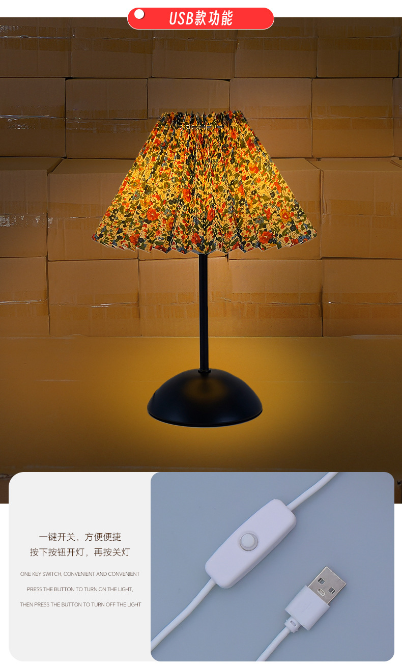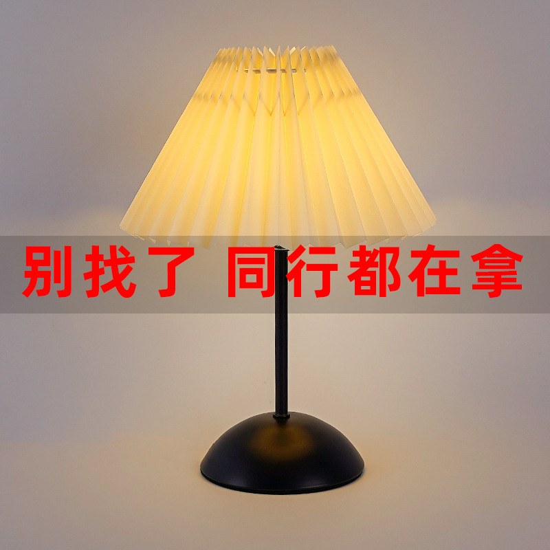 북유럽 스타일 레트로 테이블 램프 미국식 금속 기숙사 침실 잠자는 침대 옆 램프 주름 우산 밤 빛 분위기스토어 가기