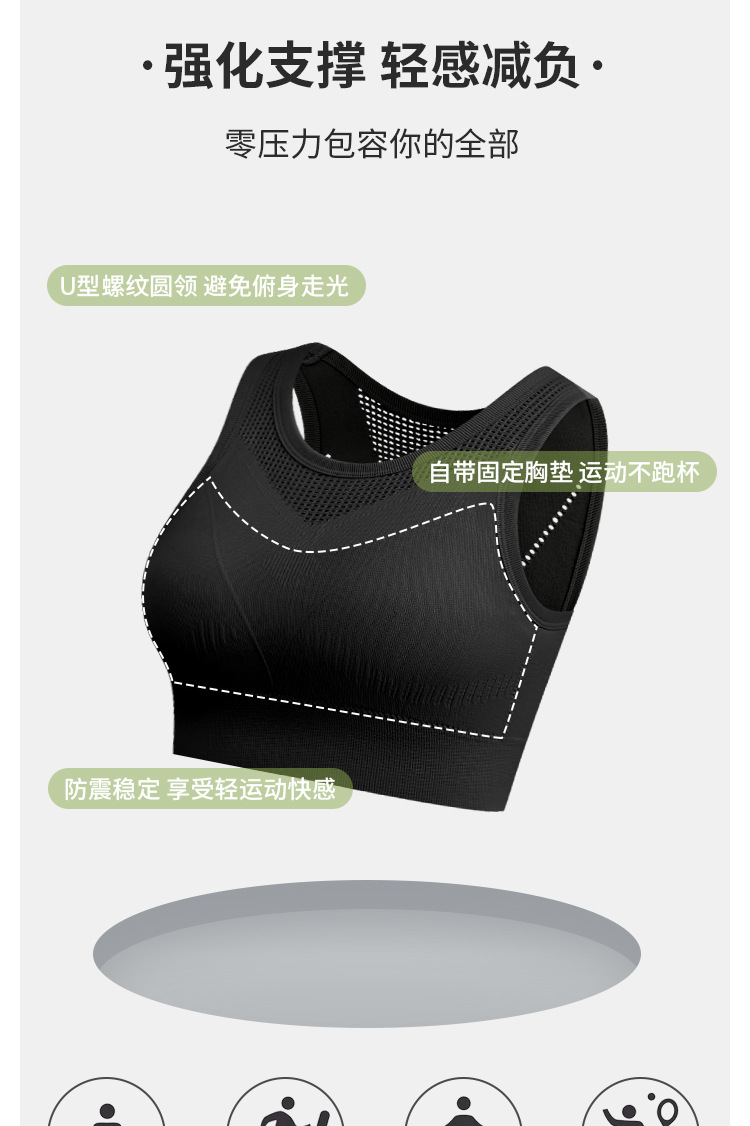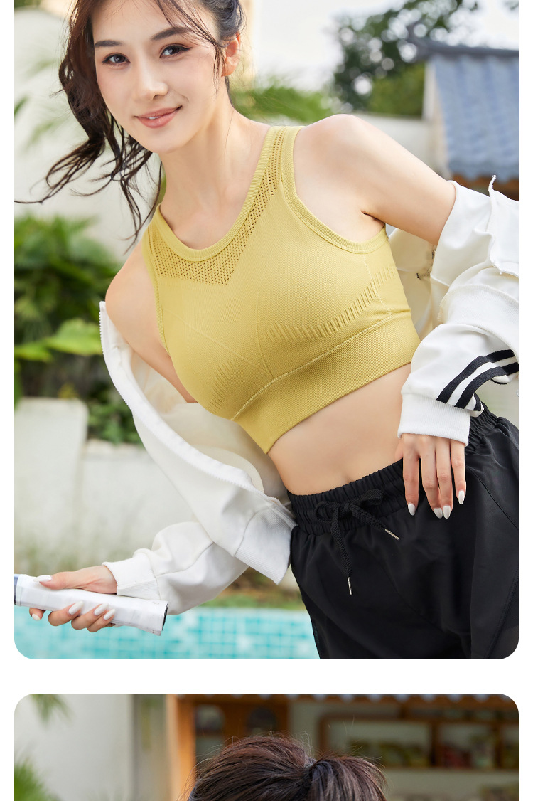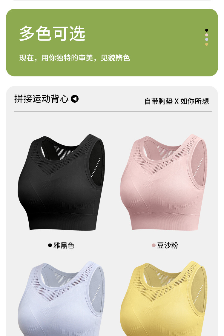 새로운 스포츠 속옷 여자 가슴 패드 고정 컵 충격 방지 푸시 업 할로우 뷰티 백 착용 통기성 브래지어