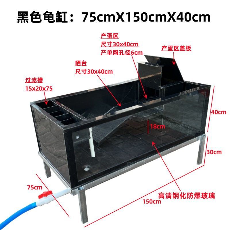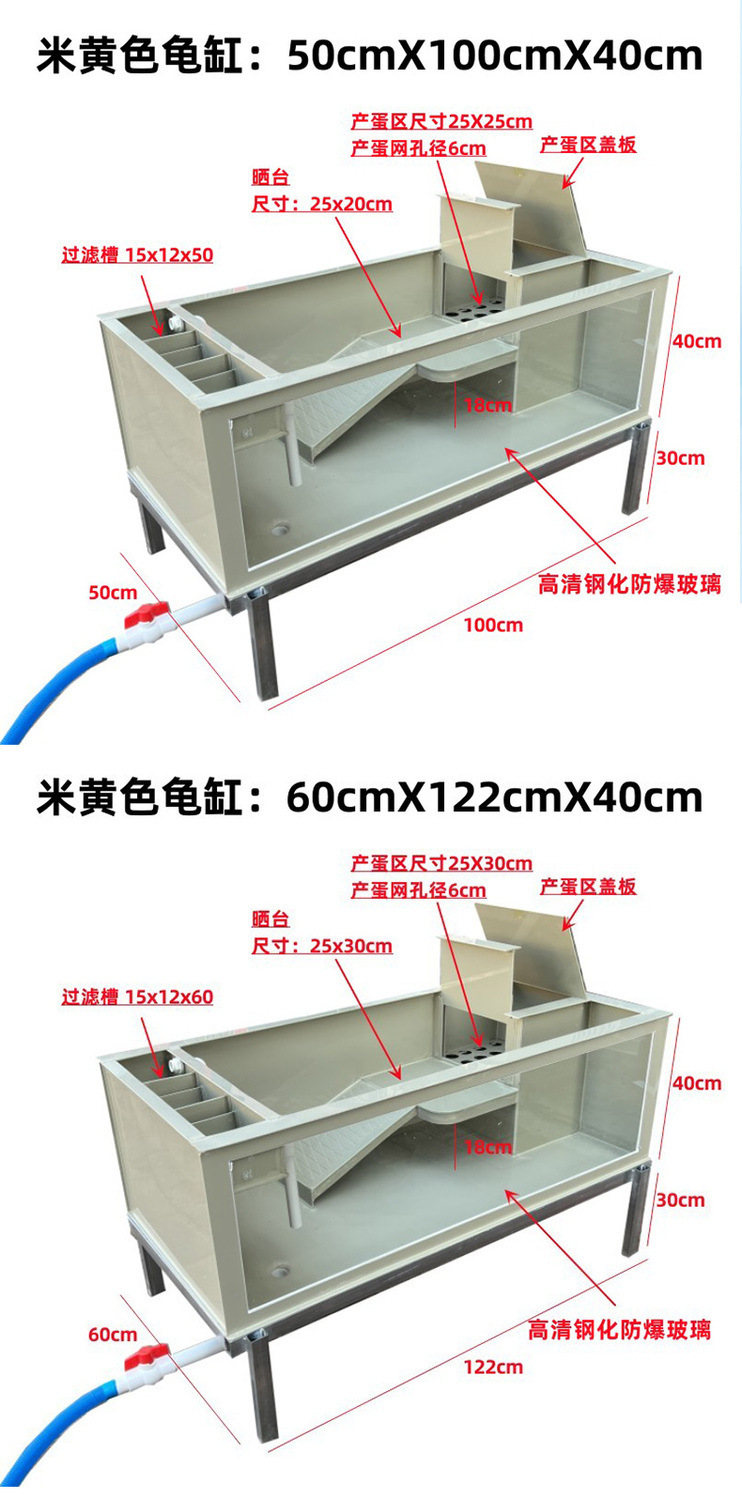 Yut 투명 거북이 탱크 물 거북이 반 물 거북이 브라질 달걀 거북이 번식 수영장 거북이 상자 태양 방지 좁은 다리 가벼운 몸 유리 탱크스토어 가기