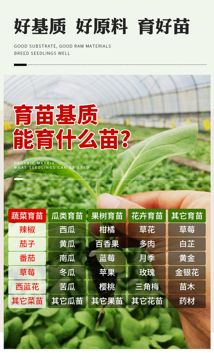 야채, 꽃, 약초, 담배, 후추, 토마토, 옥수수, 수박, 멜론, 딸기, 묘목, 기질 토양, 이탄, 영양 토양