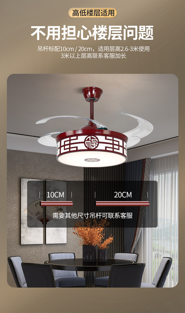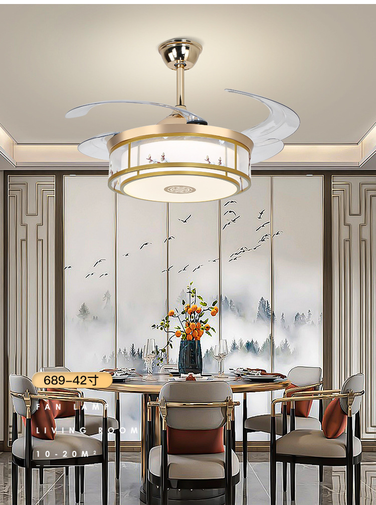 2024 새로운 팬 램프 지능형 통합 주파수 변환 분위기 거실 식당 침실 음소거 천장 팬 램프 중산 램프