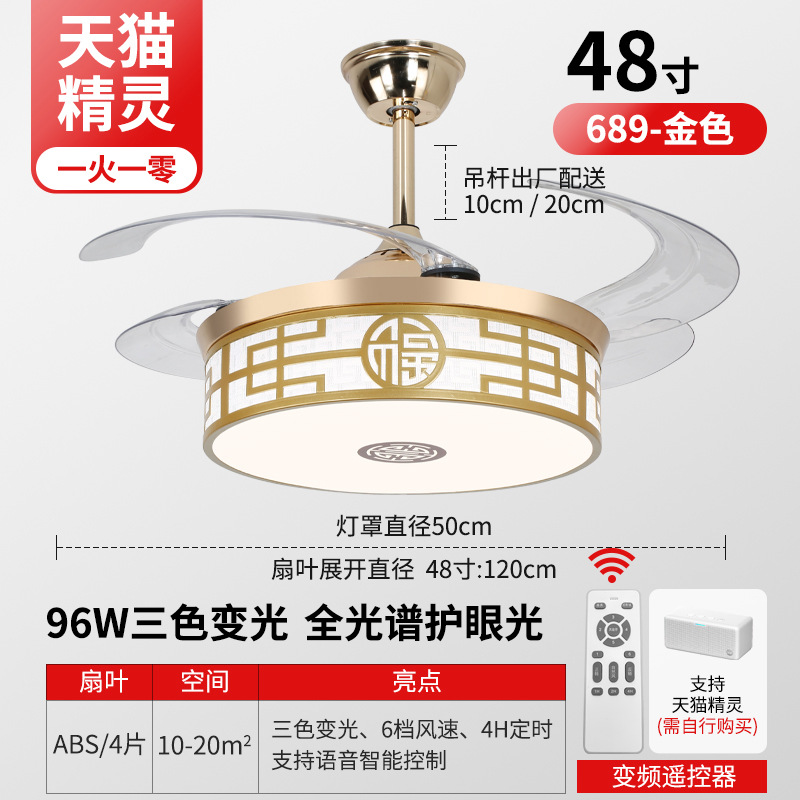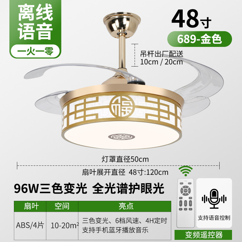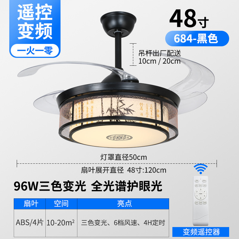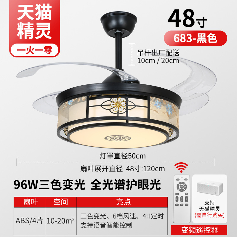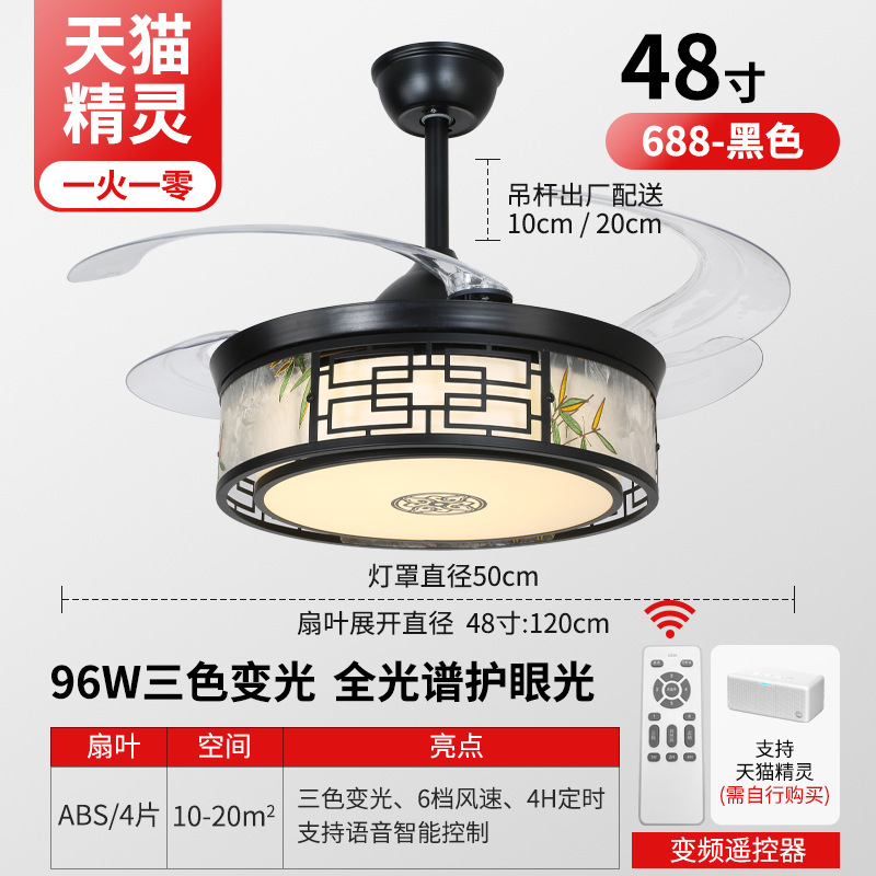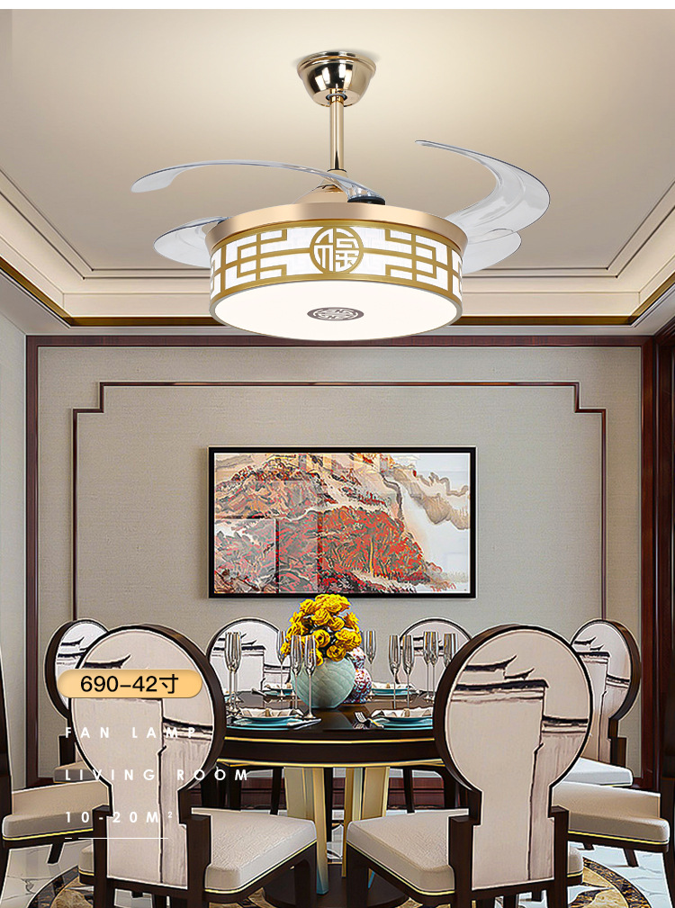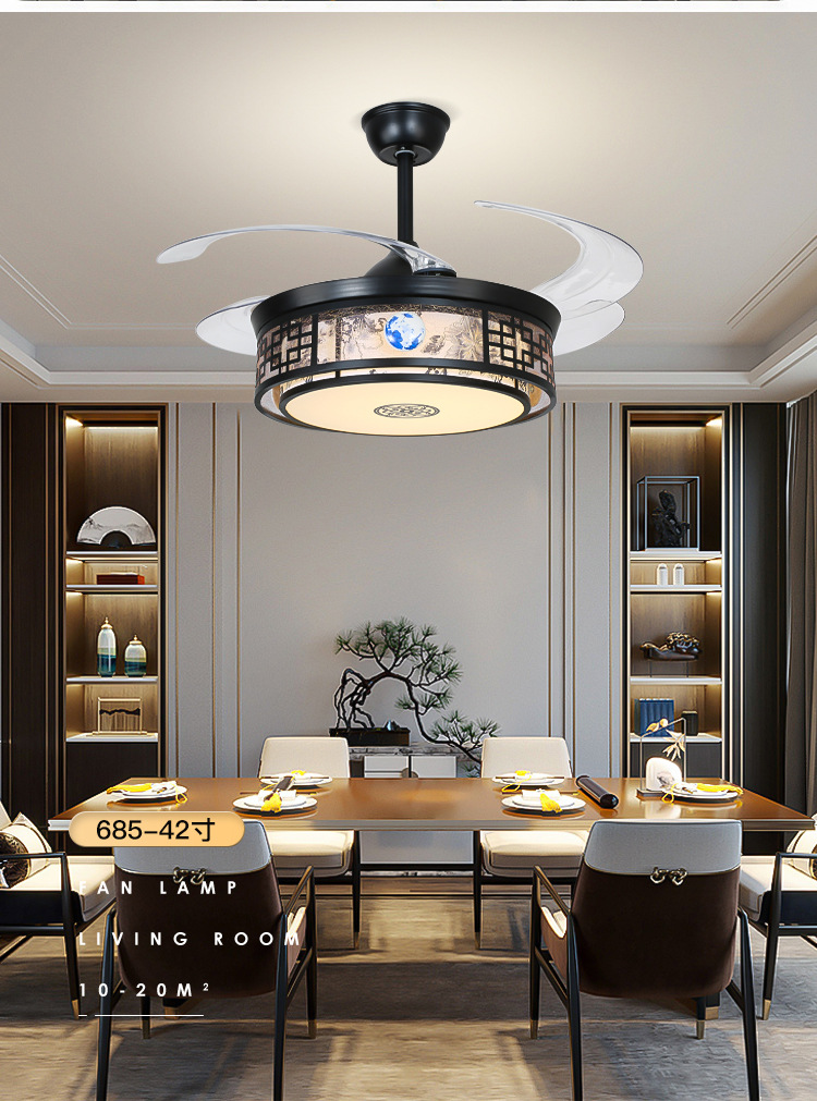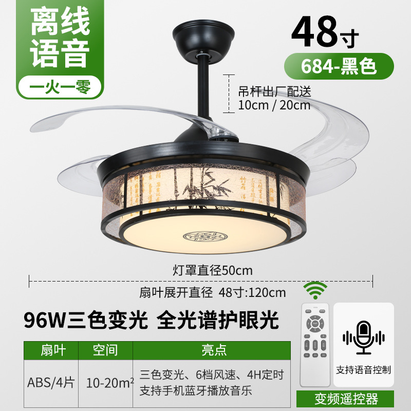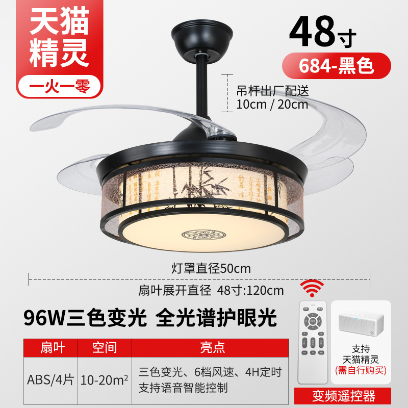 2024 새로운 팬 램프 지능형 통합 주파수 변환 분위기 거실 식당 침실 음소거 천장 팬 램프 중산 램프스토어 가기