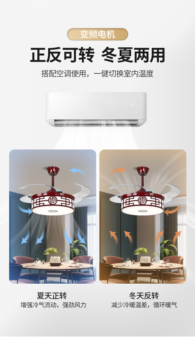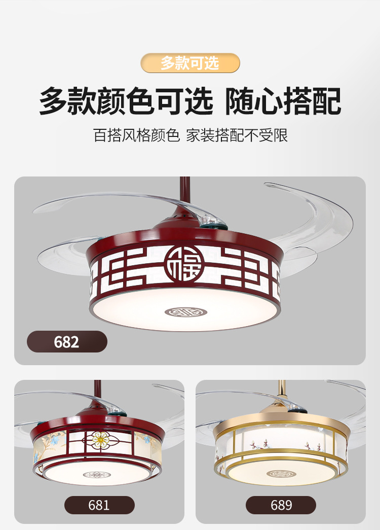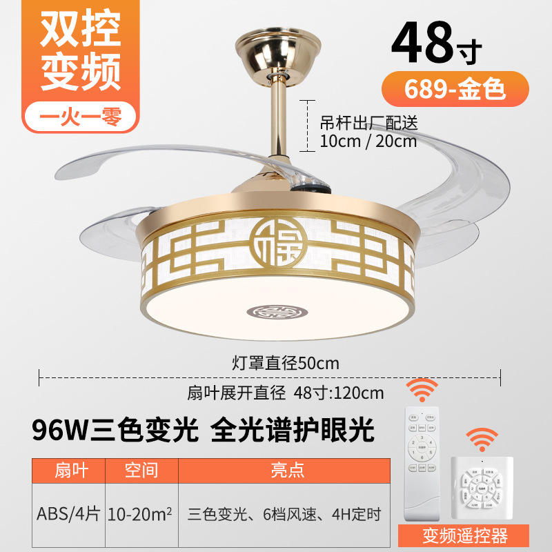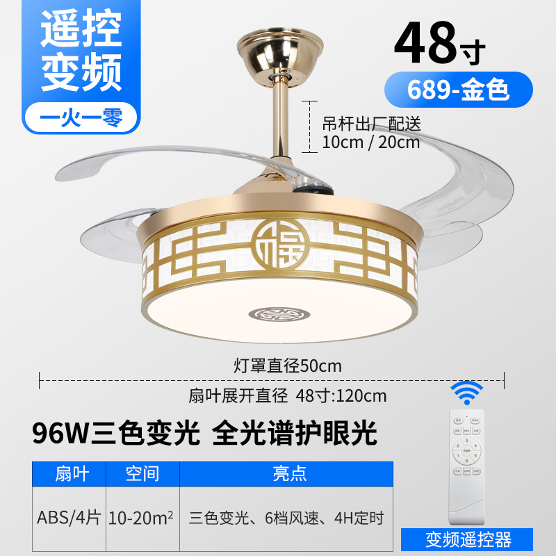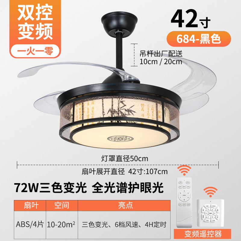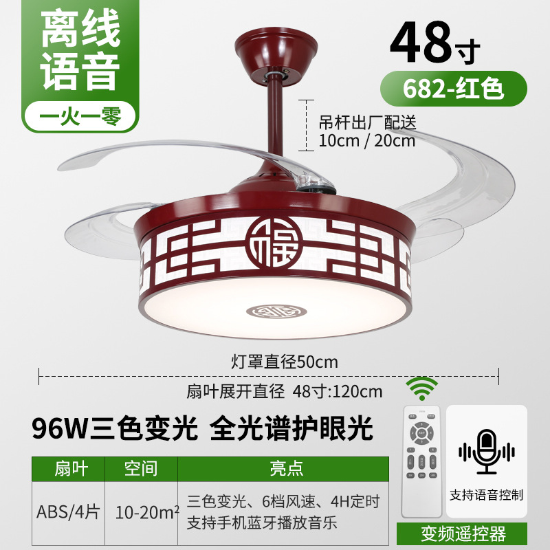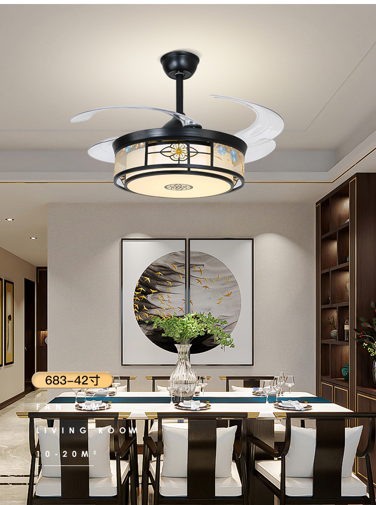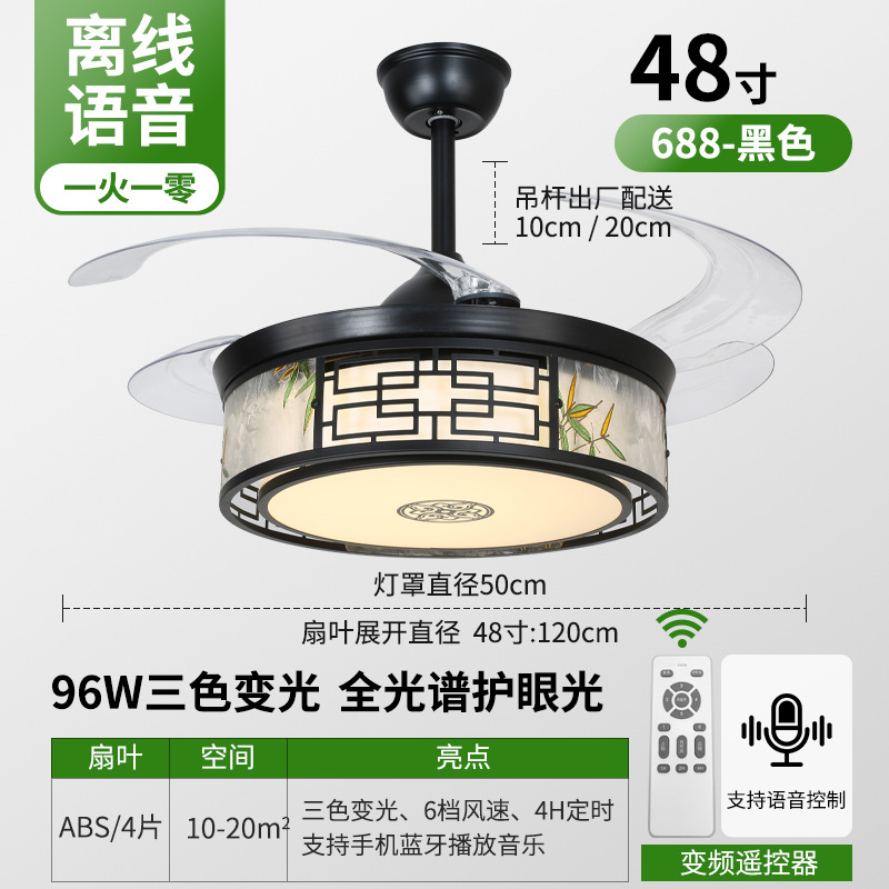 2024 새로운 팬 램프 지능형 통합 주파수 변환 분위기 거실 식당 침실 음소거 천장 팬 램프 중산 램프스토어 가기