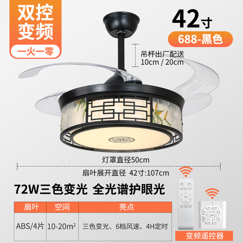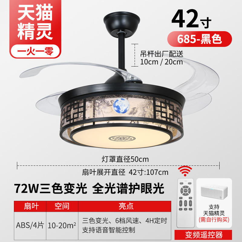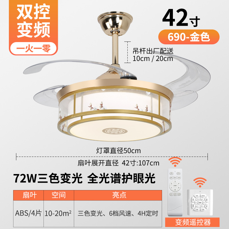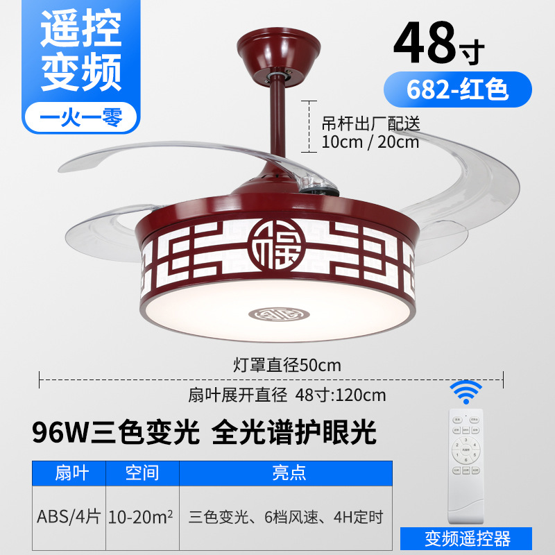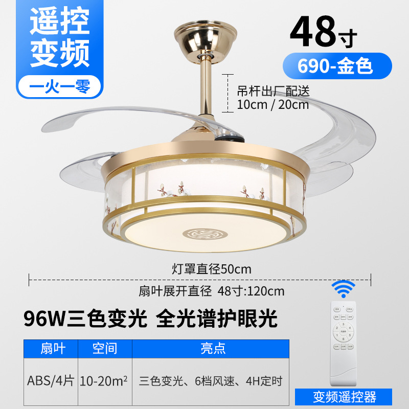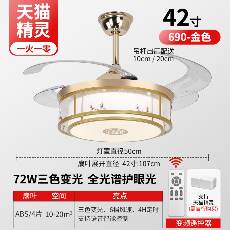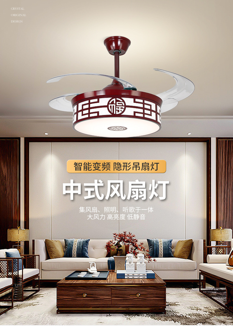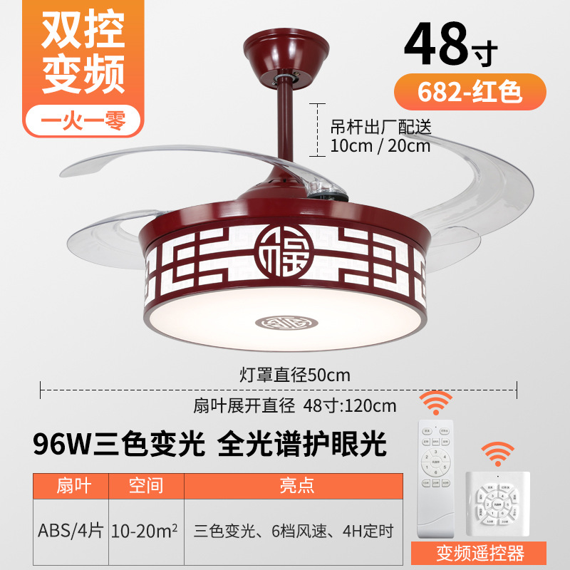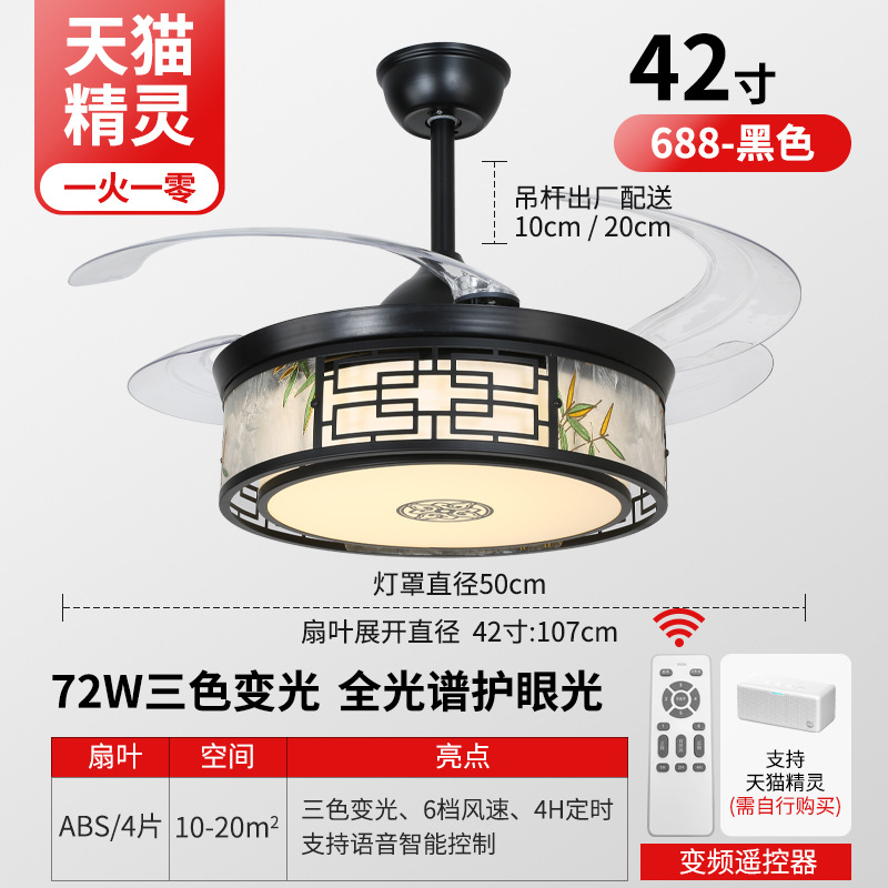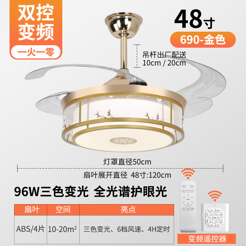 2024 새로운 팬 램프 지능형 통합 주파수 변환 분위기 거실 식당 침실 음소거 천장 팬 램프 중산 램프스토어 가기