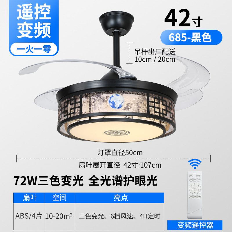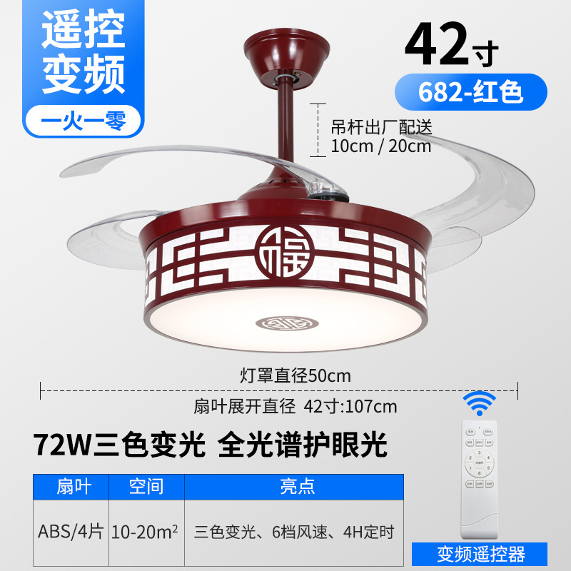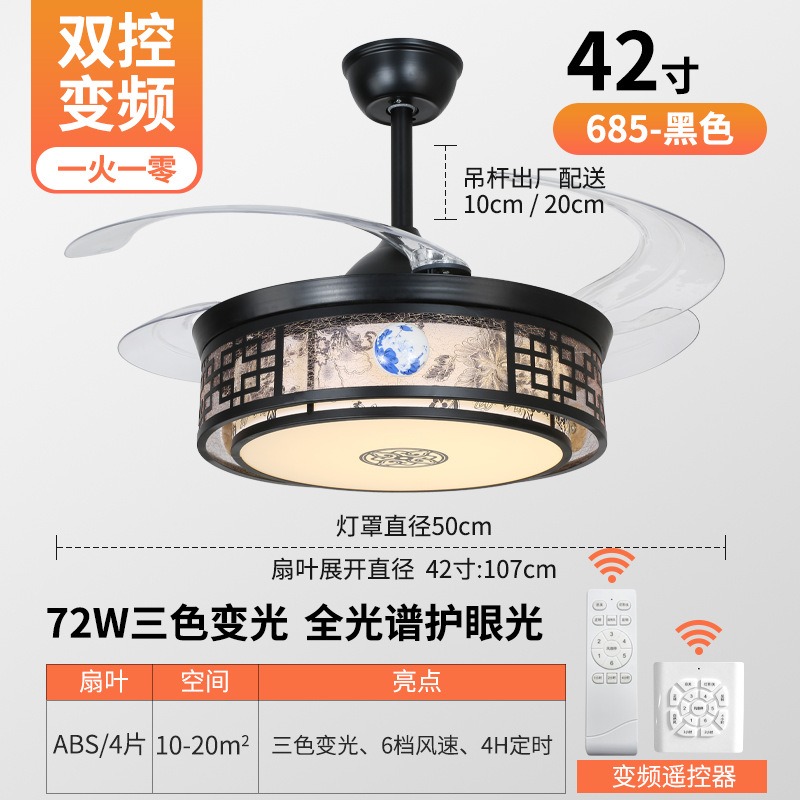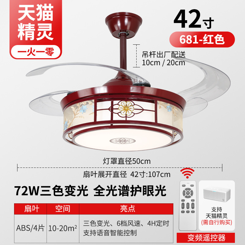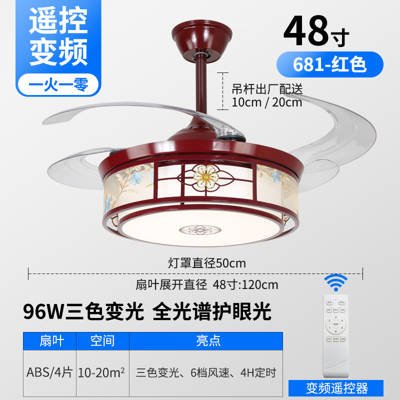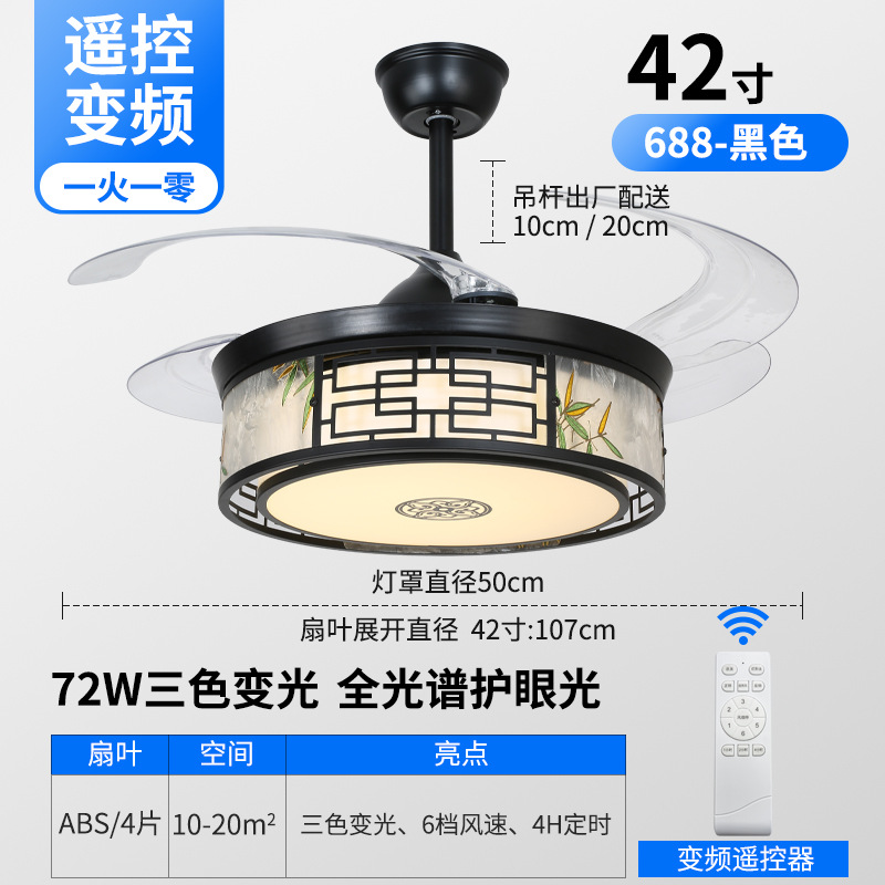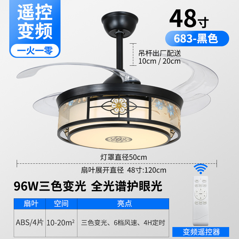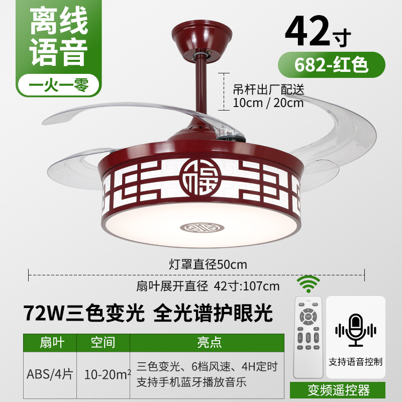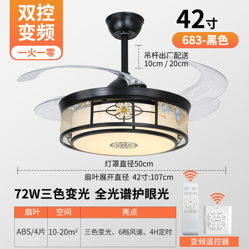 2024 새로운 팬 램프 지능형 통합 주파수 변환 분위기 거실 식당 침실 음소거 천장 팬 램프 중산 램프스토어 가기