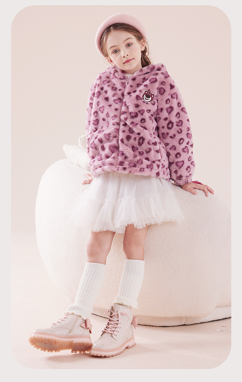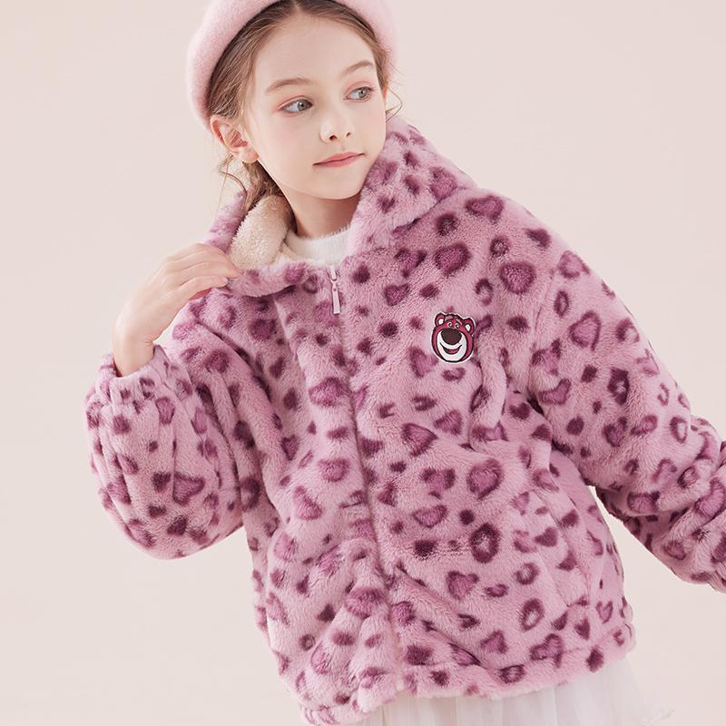 소녀 코트 어린이 재킷 2024 새로운 가을 및 겨울 착용 기모 두꺼운 가짜 캐시미어 아동복 딸기 곰