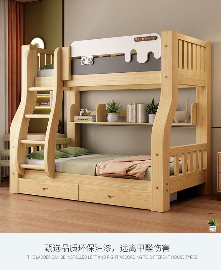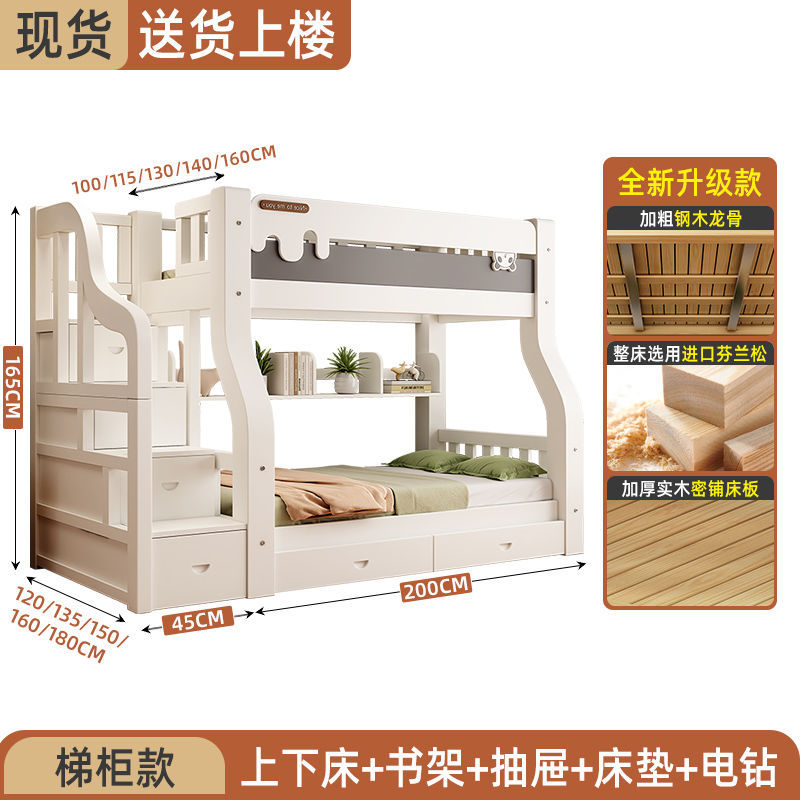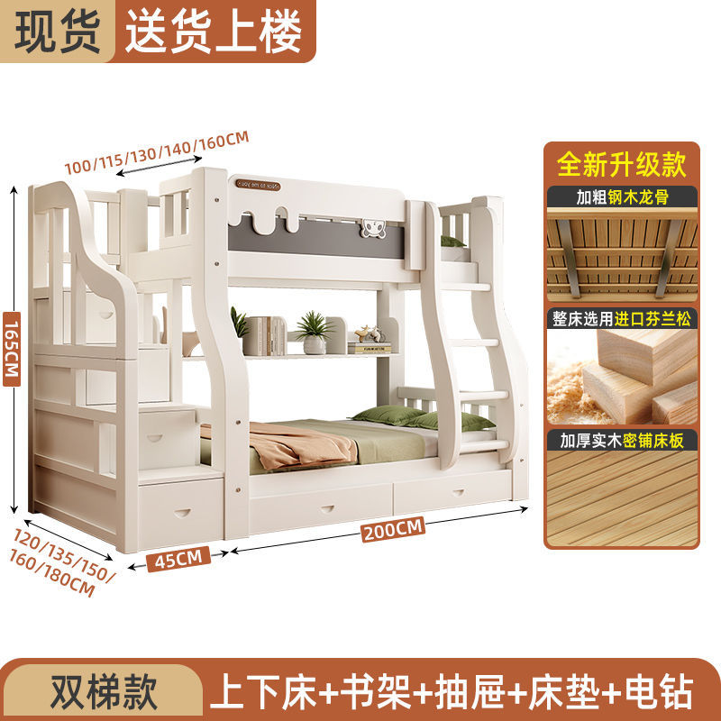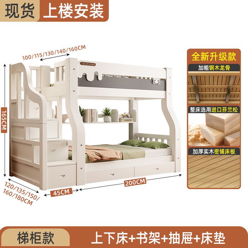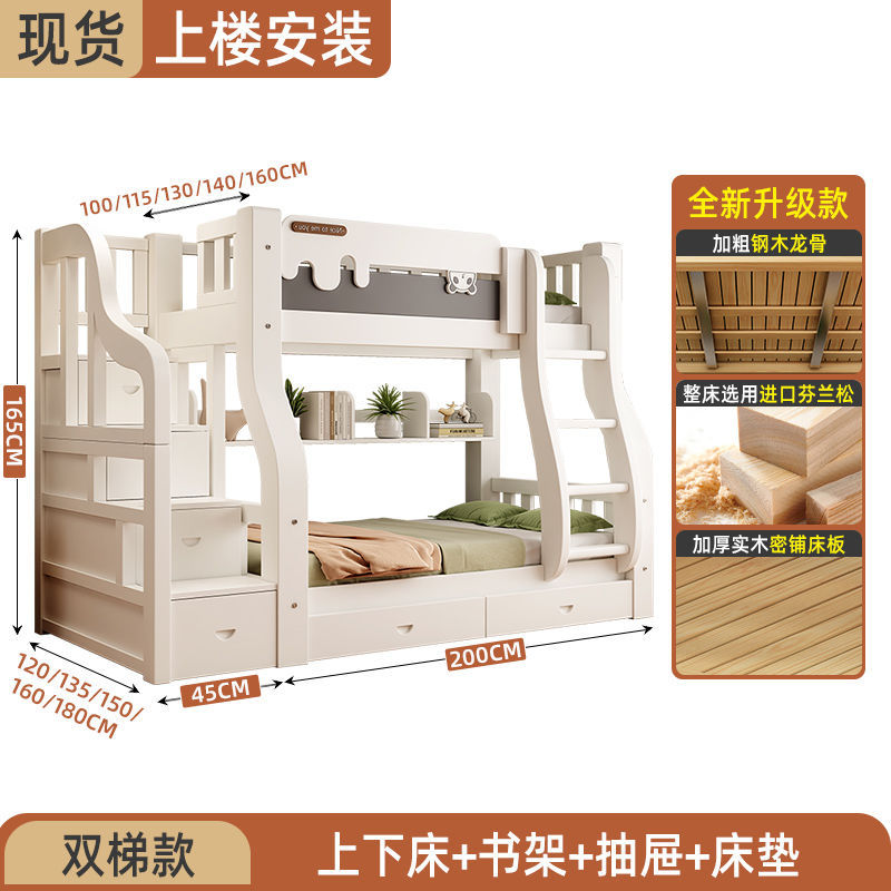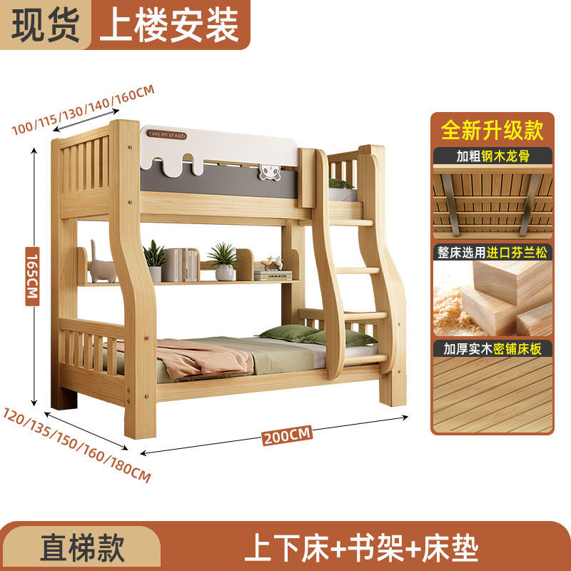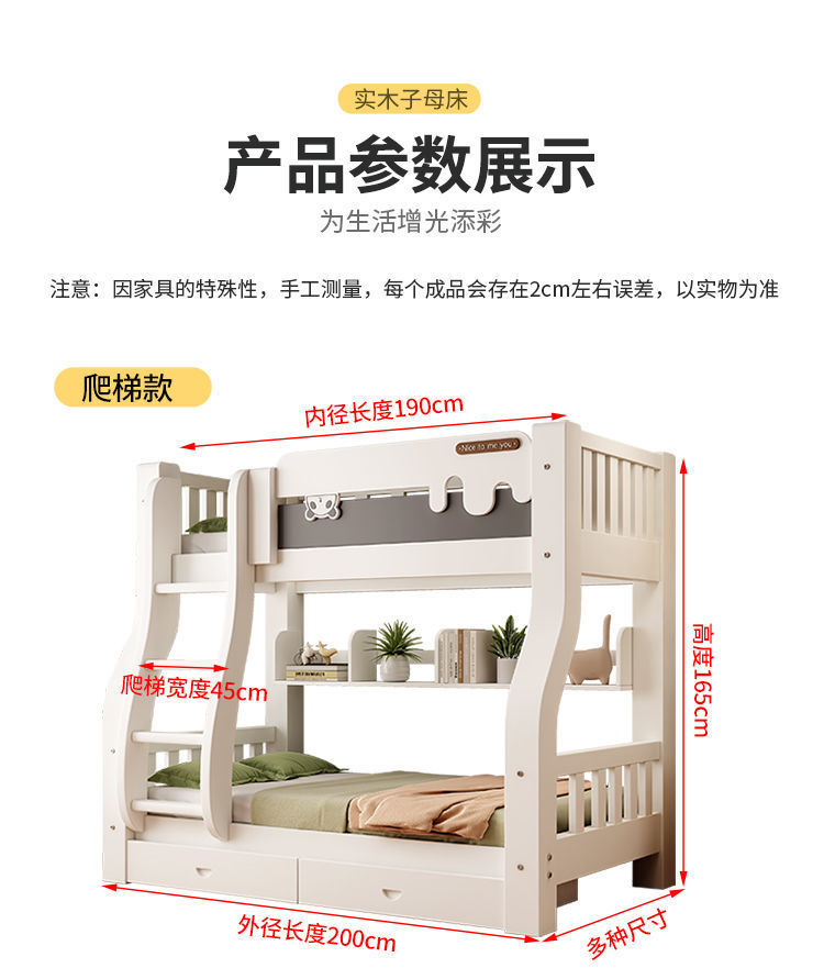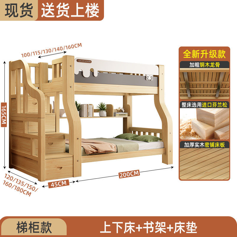 단단한 나무 엄마와 아이 침대 버킹 침대 2 층 다기능 침대 조합 침대 높고 낮은 침대 두꺼운 어린이 침대