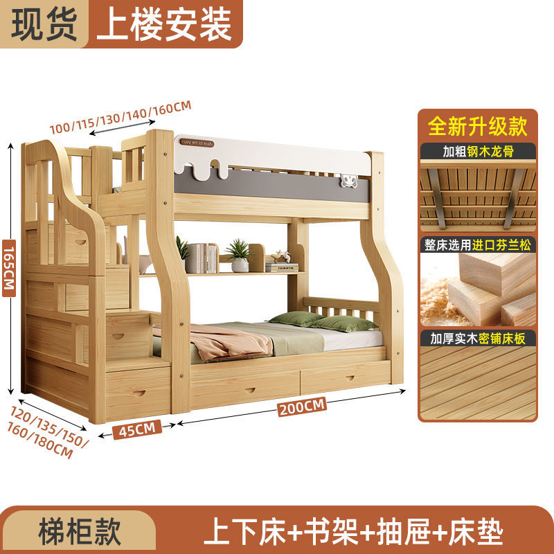 단단한 나무 엄마와 아이 침대 버킹 침대 2 층 다기능 침대 조합 침대 높고 낮은 침대 두꺼운 어린이 침대스토어 가기
