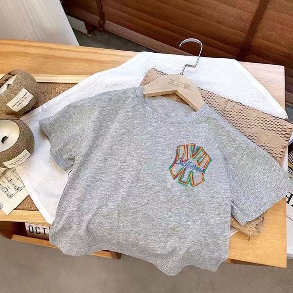 24 보이즈 코튼 반팔 티셔츠 여름 아동복 잘 생긴 소년과 소녀 둥근 목 반소매 티셔츠 중소 키즈 트렌디 브랜드 탑