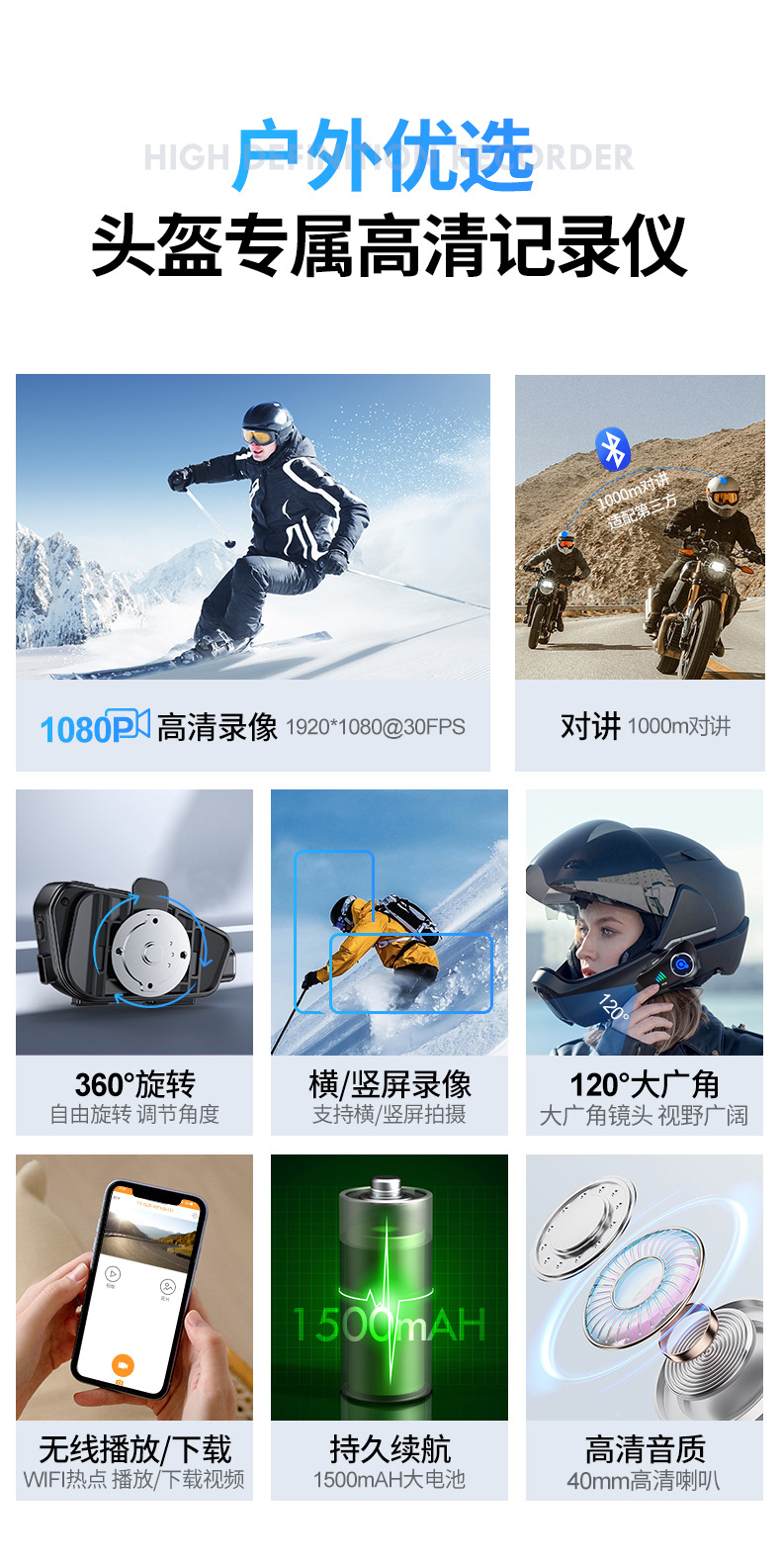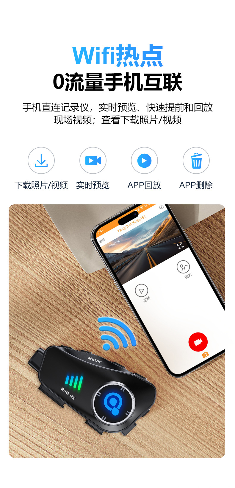 Q282X 운전 기록 장치 헬멧 블루투스 헤드셋 인터콤 방수 고화질 촬영 일체형 오토바이 헤드셋
