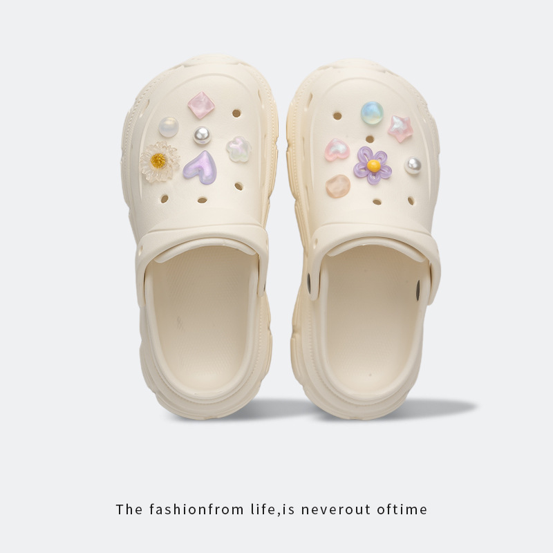 귀여운 동굴 신발 여성의 여름 높이 증가 샌들 및 슬리퍼 미끄럼 통기성 가리 하트 비치 슬리퍼 여성용 외부 DIY 착용스토어 가기