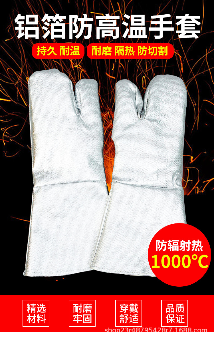 노동 가드 LB-LWS-001 단열 고온 난연성 내화 방지 3 손가락 알루미늄 호일 장갑