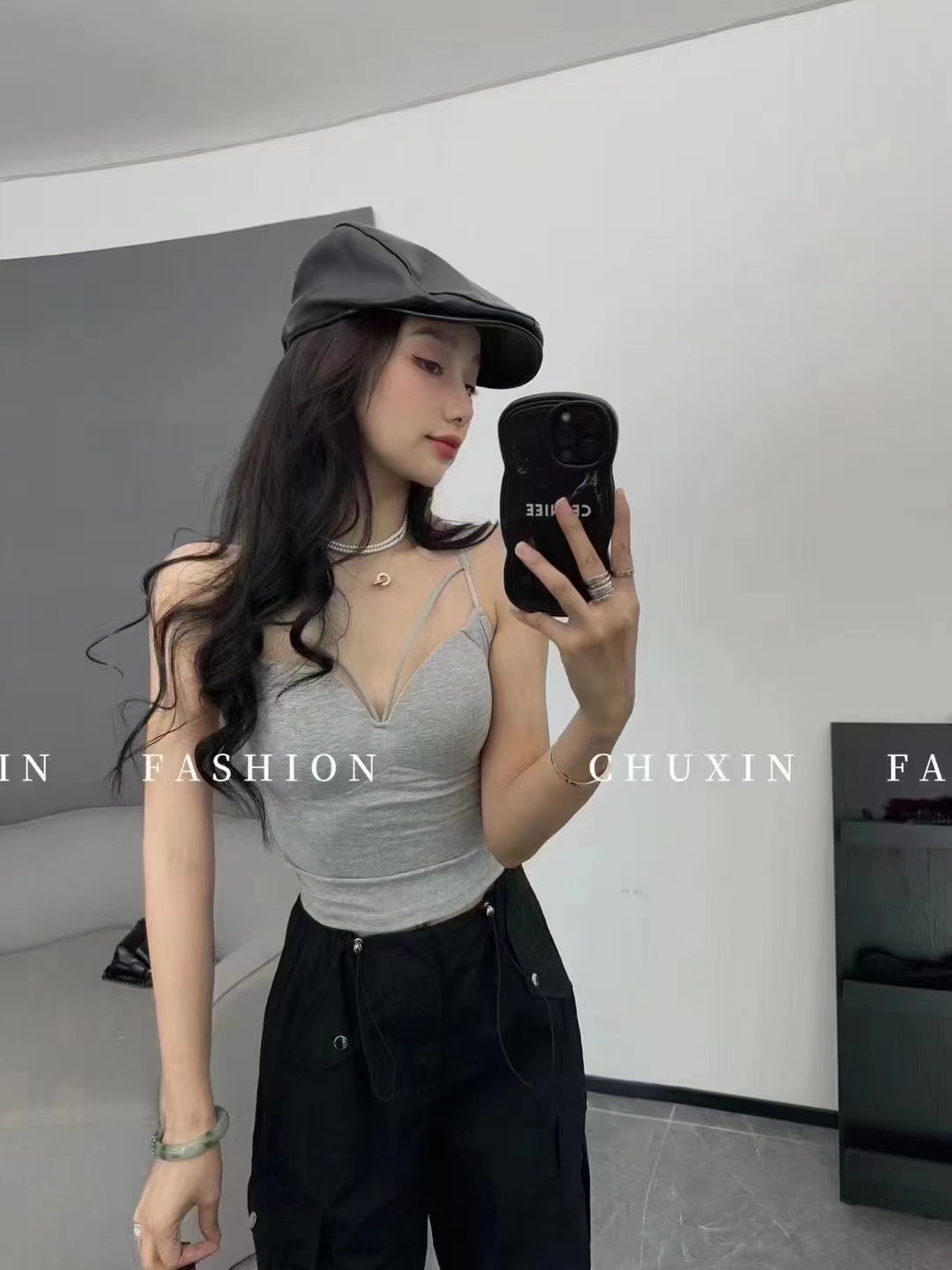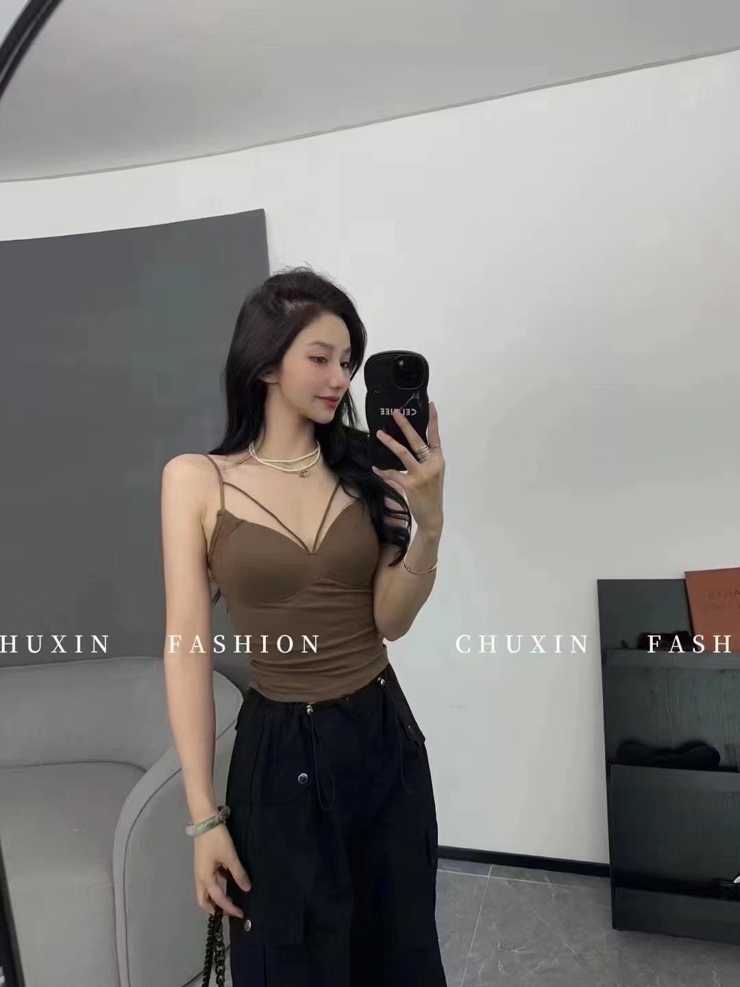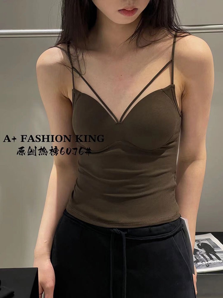 6076A 스파이스 걸스 V-Neck, 가슴 패드 카미 솔 여성 섹시 백리스 아름다운 백 슬림 핏 올 매치 보텀 탑과 함께 제공스토어 가기