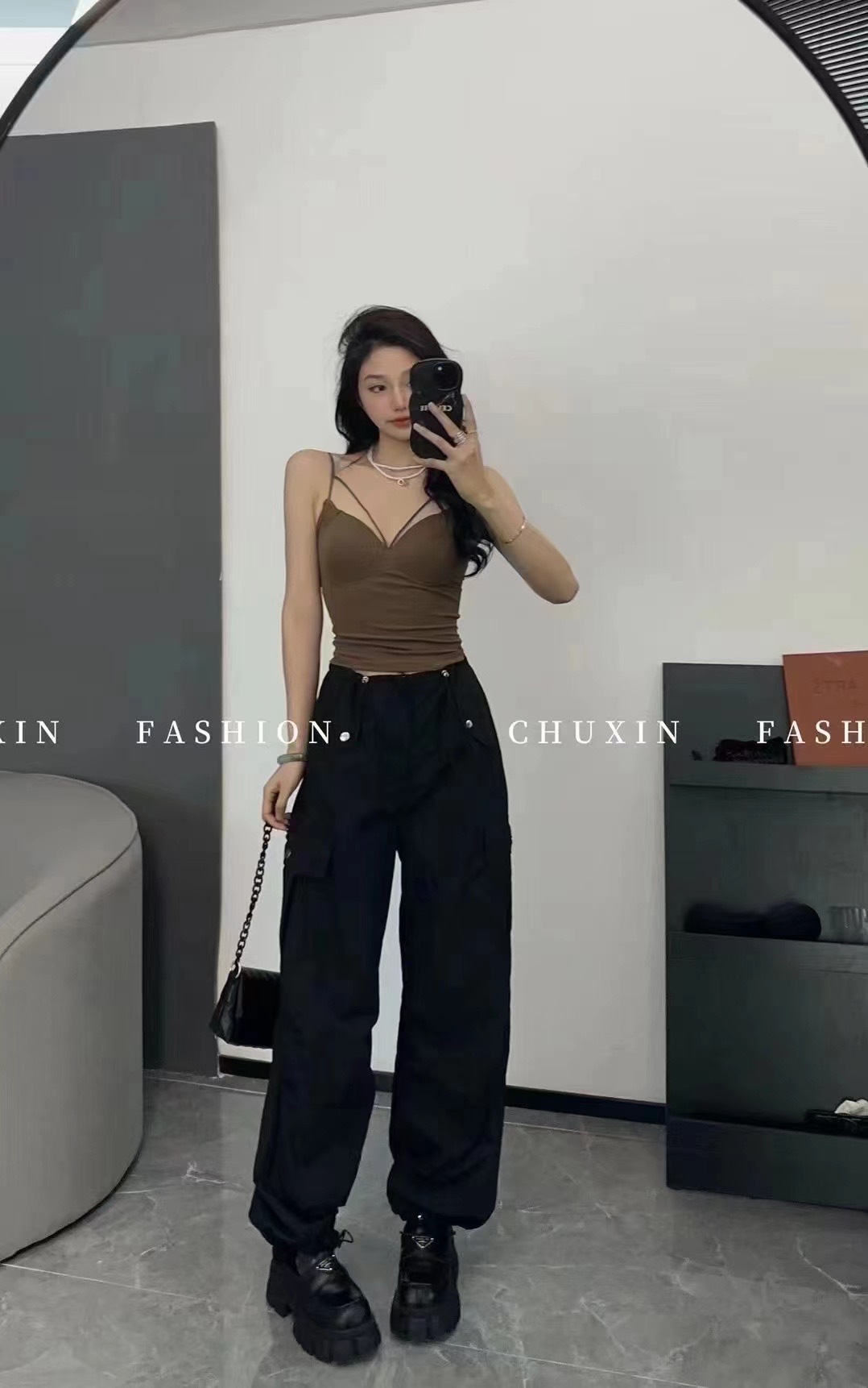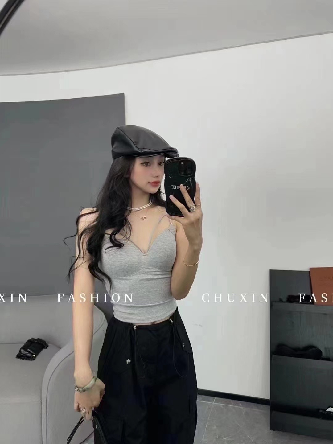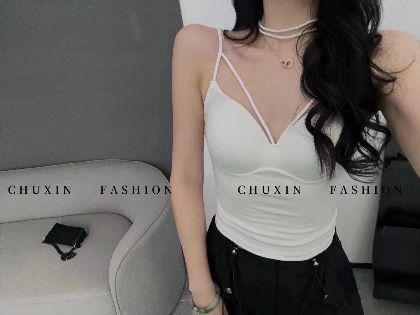 6076A 스파이스 걸스 V-Neck, 가슴 패드 카미 솔 여성 섹시 백리스 아름다운 백 슬림 핏 올 매치 보텀 탑과 함께 제공스토어 가기