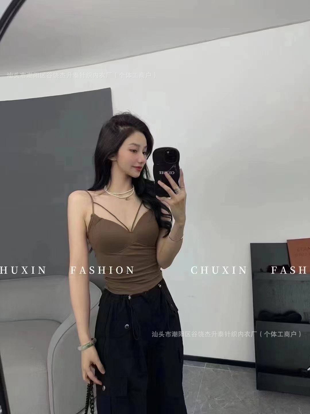 6076A 스파이스 걸스 V-Neck, 가슴 패드 카미 솔 여성 섹시 백리스 아름다운 백 슬림 핏 올 매치 보텀 탑과 함께 제공