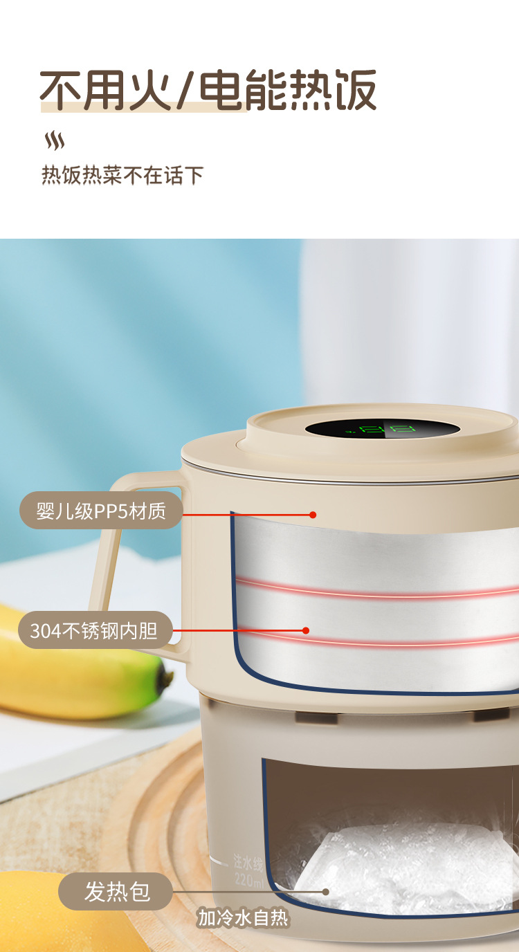 자가발열팩, 발열도시락, 야외 기숙사용 전기선 없이 사용하는 스테인리스 보온 도시락, 캠핑용
