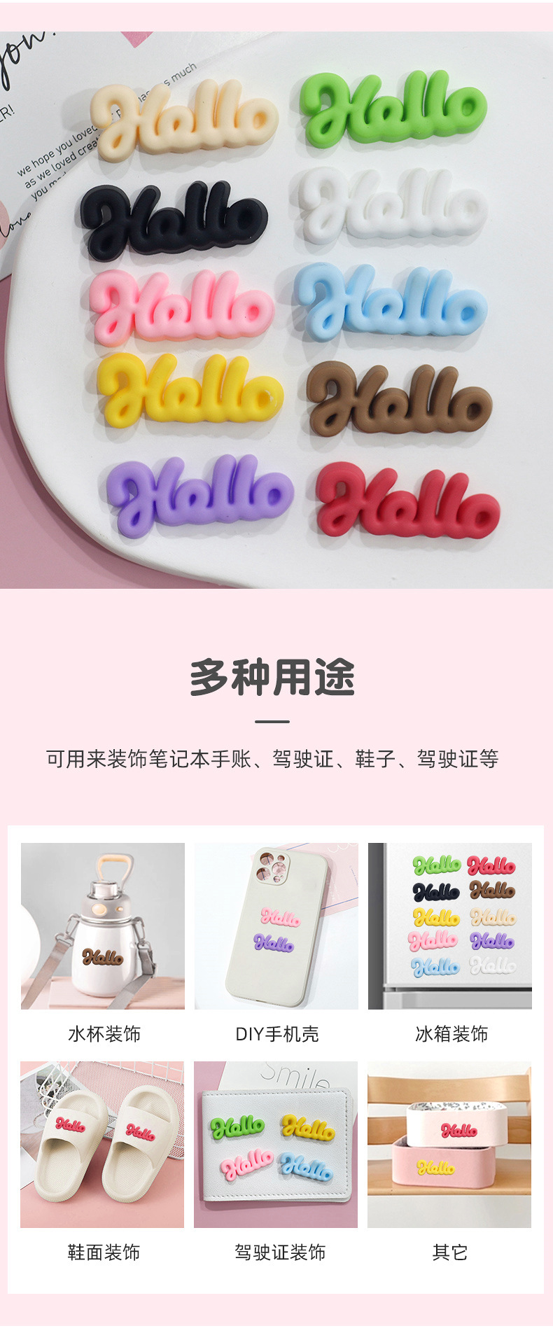 안녕하세요 편지 PVC 부드러운 접착제 만화 전화 케이스 냉장고 스티커 물 컵 스테레오 스티커 DIY 구멍 슬리퍼 버클 액세서리