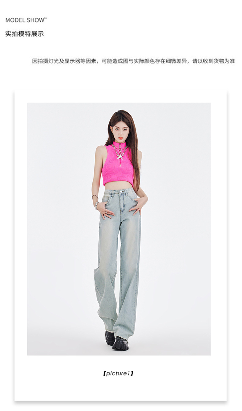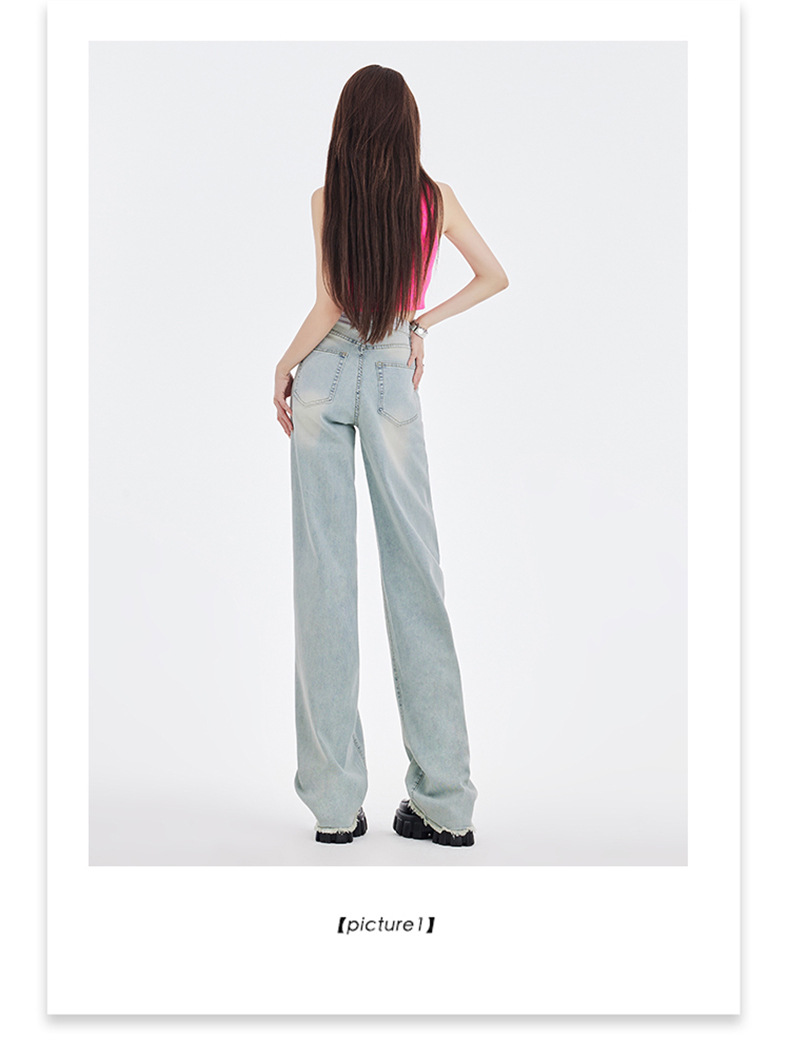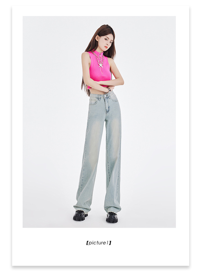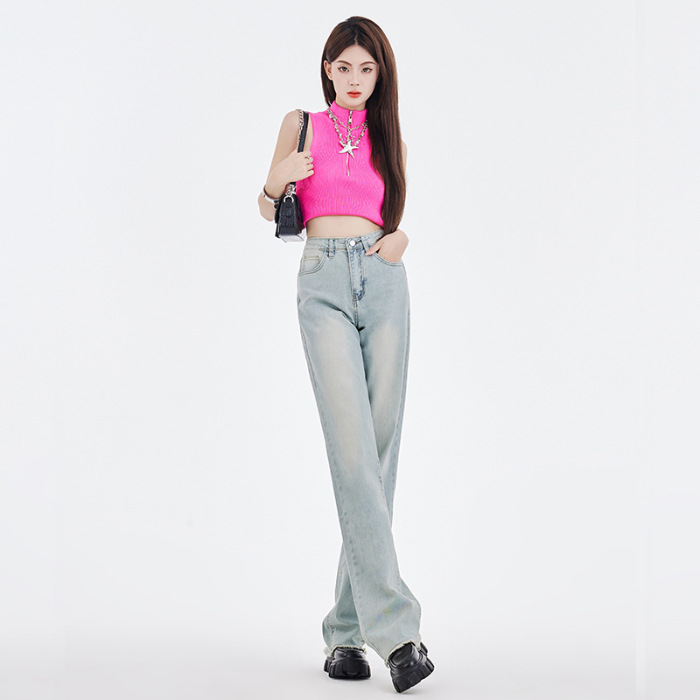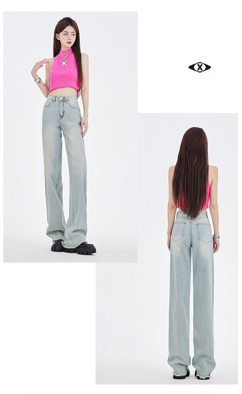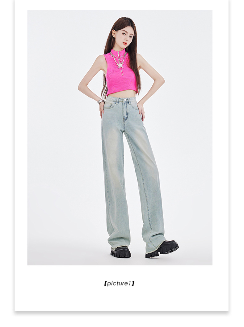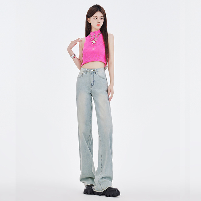아메리칸 스타일 레트로 블루 올드 스트레이트 여성 2024 년 여름 새로운 루즈 러스트 슬리밍 바지 슬림 핏 슬림 넓은 다리 바지