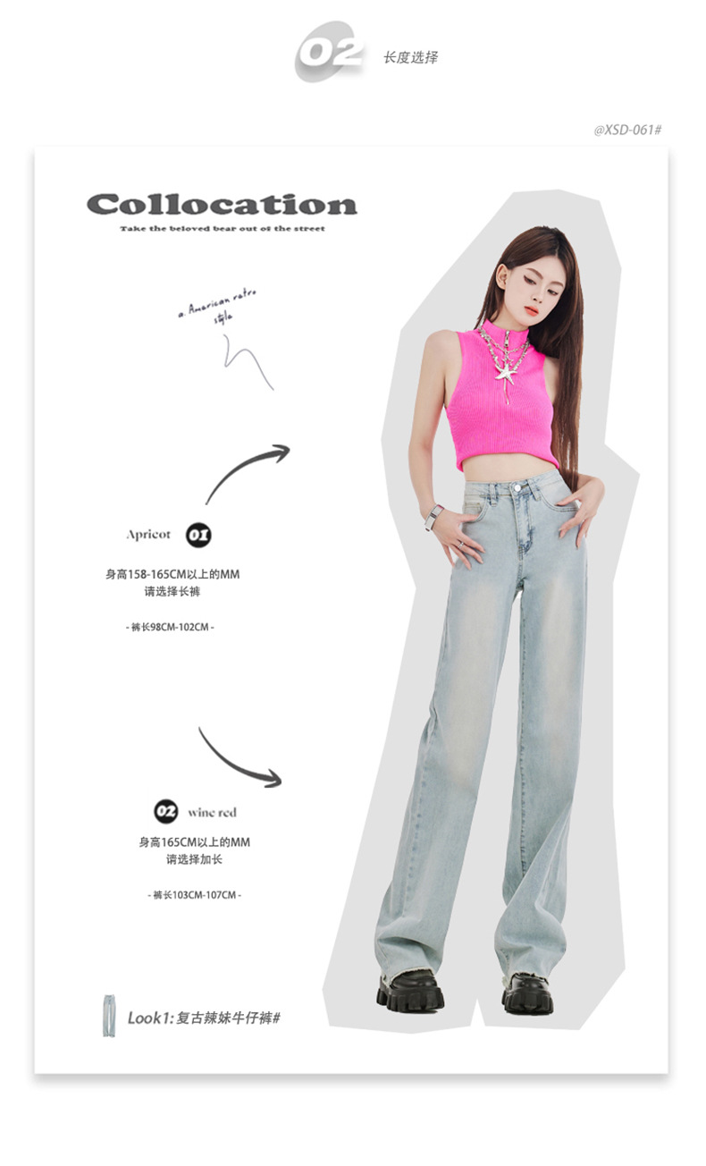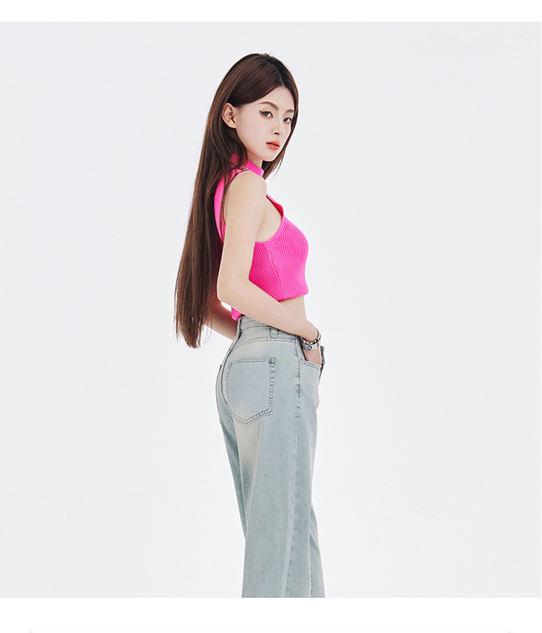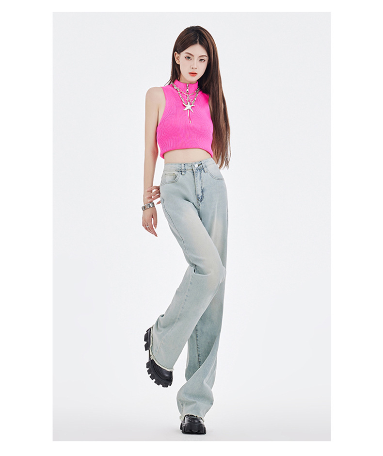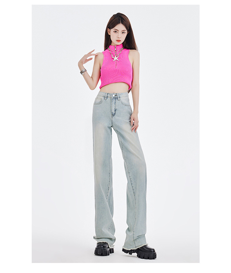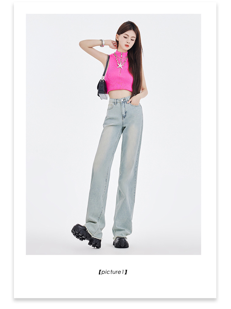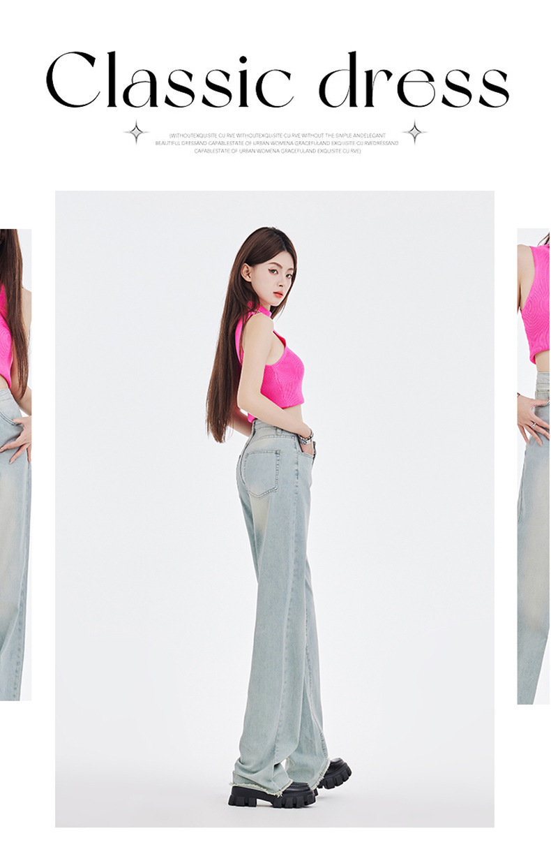 아메리칸 스타일 레트로 블루 올드 스트레이트 여성 2024 년 여름 새로운 루즈 러스트 슬리밍 바지 슬림 핏 슬림 넓은 다리 바지