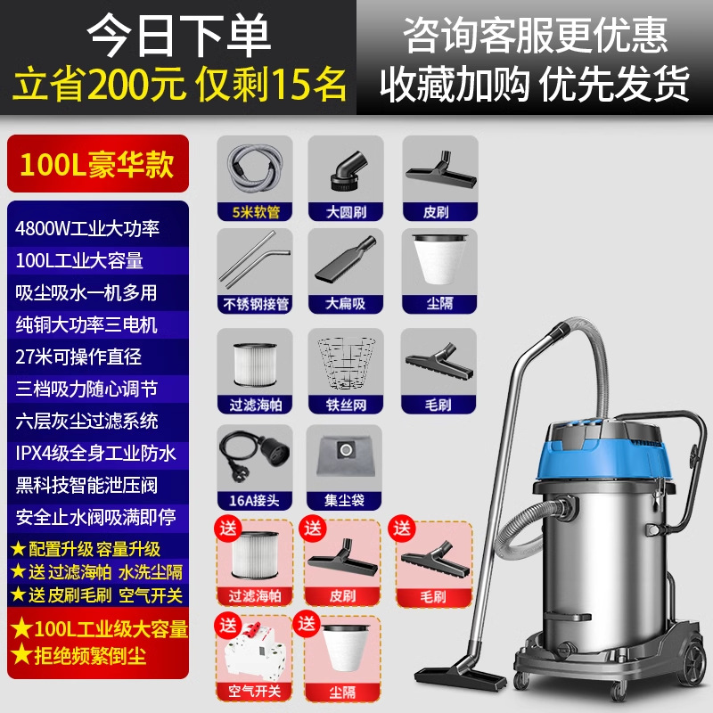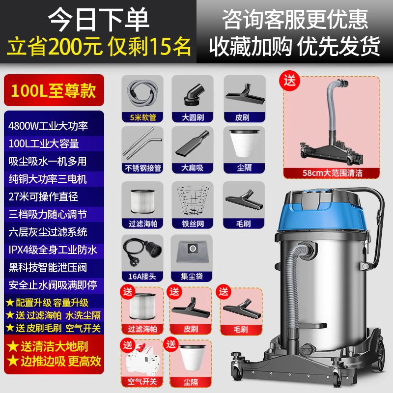 • [업그레이드된 바닥 브러시 속도 청소] 100L 모델 - 4800W.