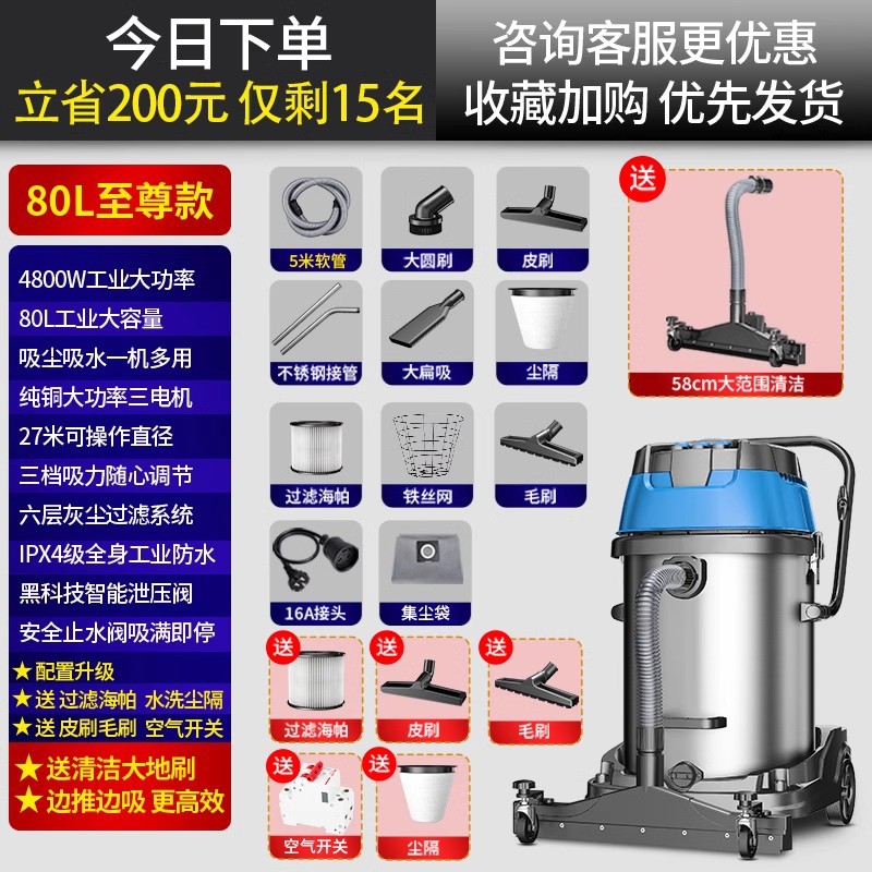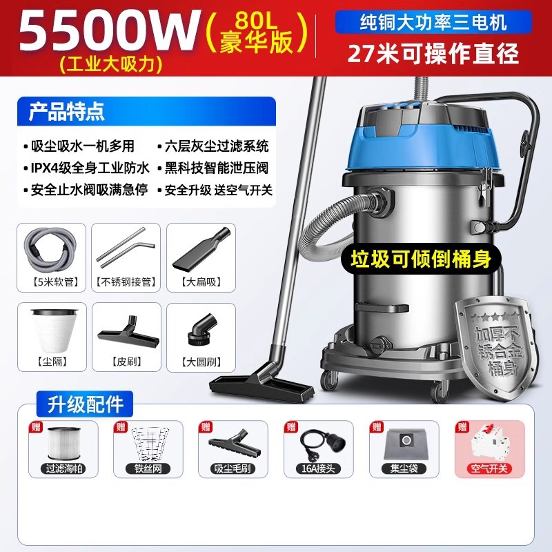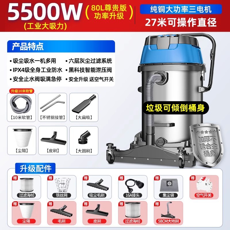• [업그레이드된 바닥 브러시 청소] 80L 모델-5500W/3코어 강력한 전력.
