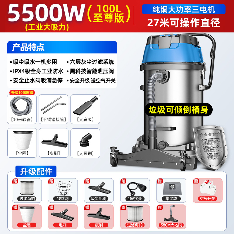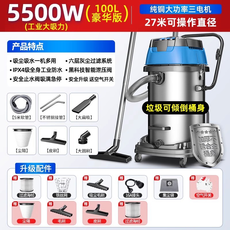 • [업그레이드된 흙브러시율 청소] 100L 모델-5500W/3코어 강력한 파워