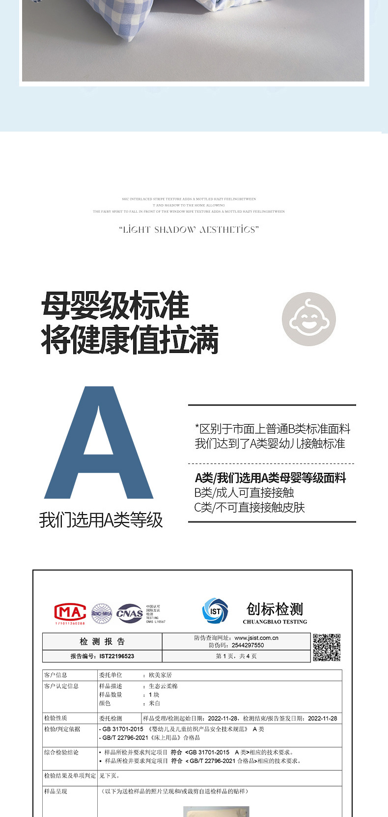 새로운 클래스 A 클라우드 코튼 여름 이불 엄마와 어린이 학년 콩 섬유 여름 쿨 퀼트 간단한 스타일 체크 무늬 에어컨 퀼트 기계스토어 가기