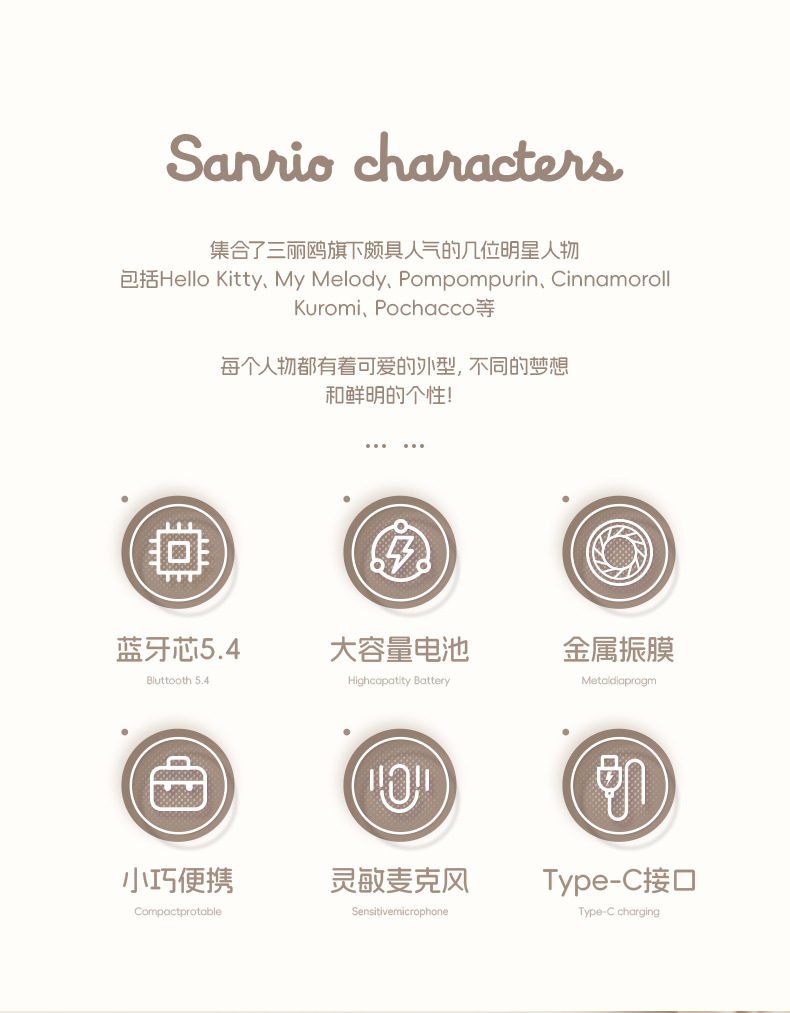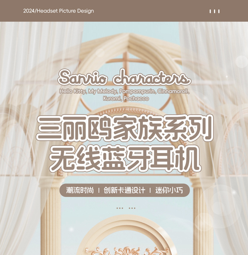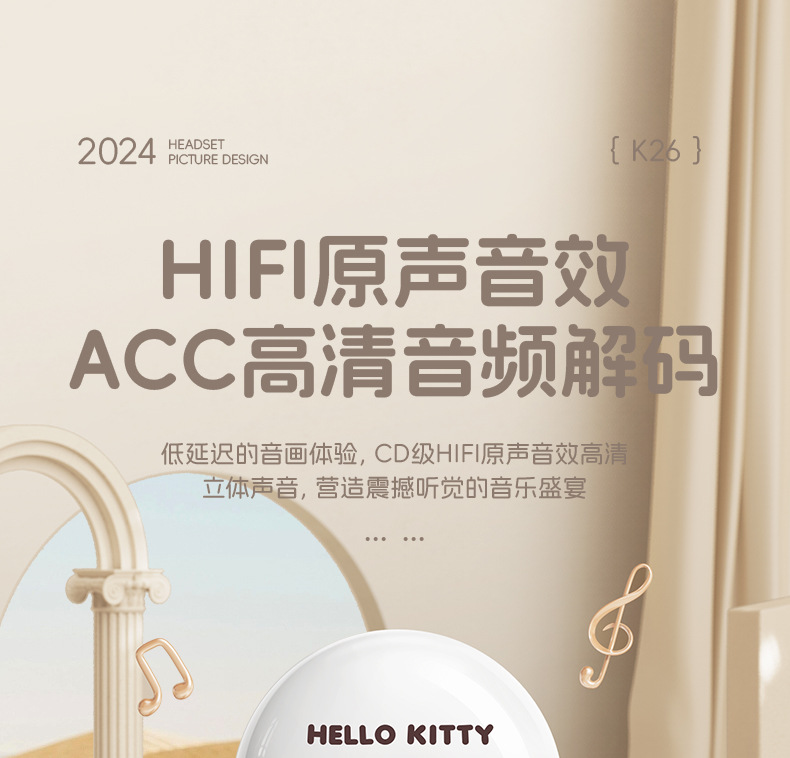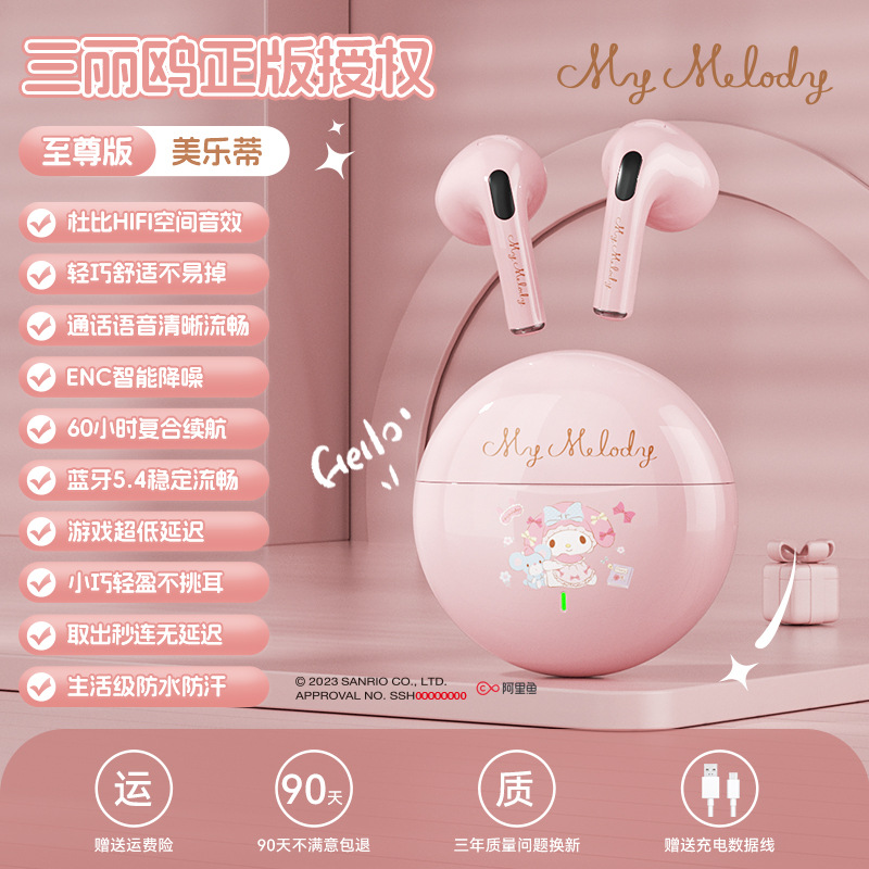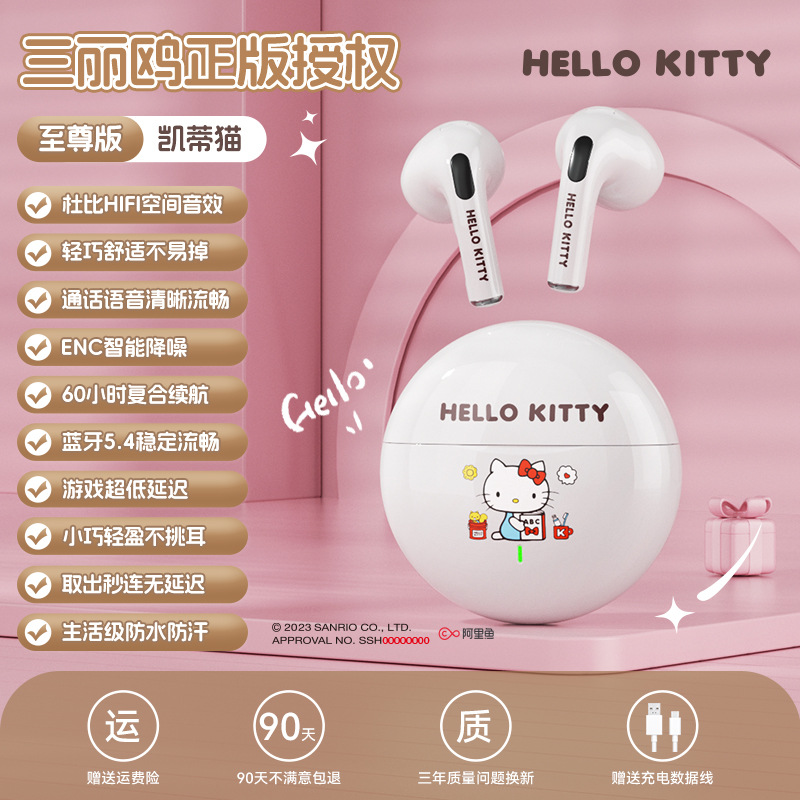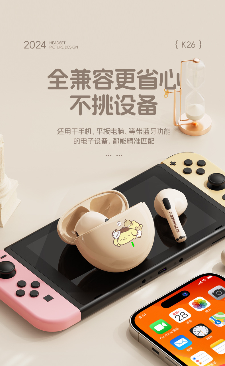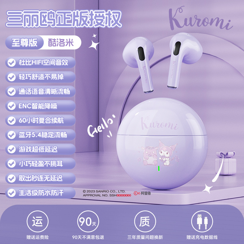 산리오 블루투스 이어폰 K26 초장시간 배터리 HIFI 스테레오 사운드 스포츠 러닝 무선 귀여운 IP 콜라보
