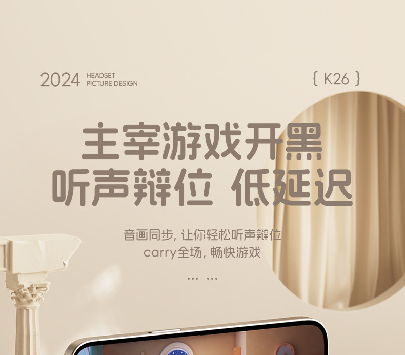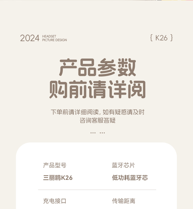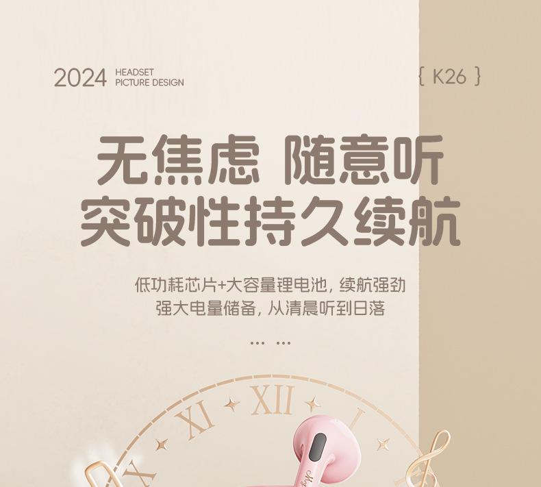 산리오 블루투스 이어폰 K26 초장시간 배터리 HIFI 스테레오 사운드 스포츠 러닝 무선 귀여운 IP 콜라보스토어 가기