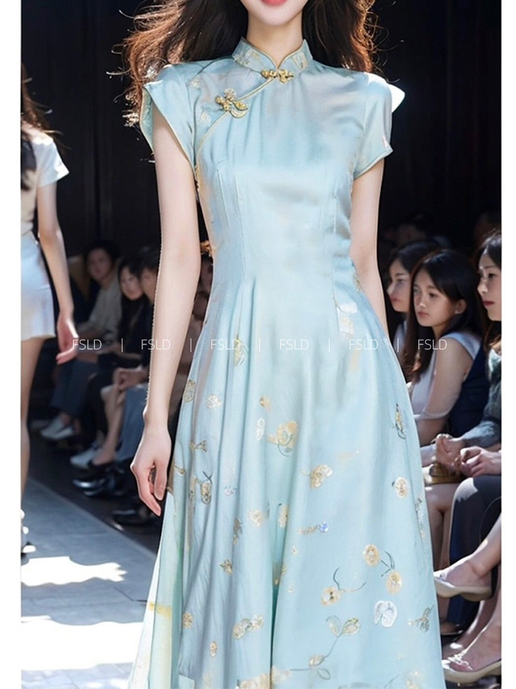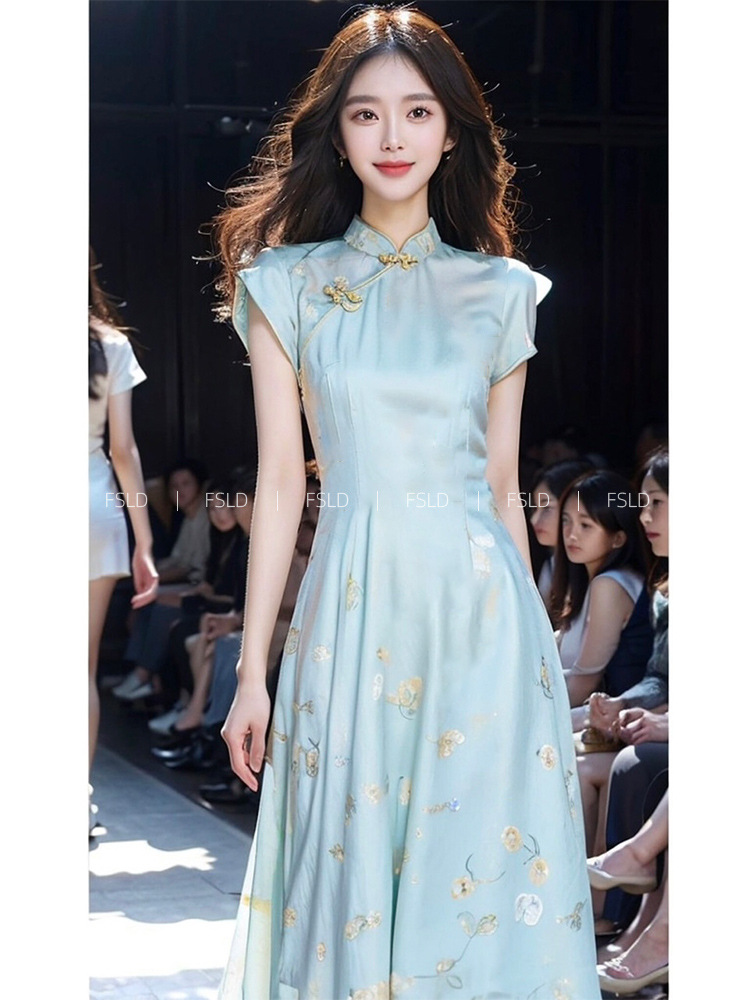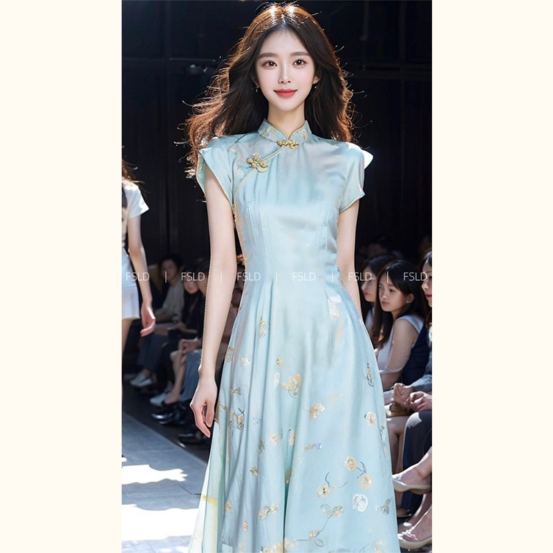 YT346462 새로운 중국 스타일 국가 스타일 여성 송진 원피스 수정 된 청삼 2024 새로운 여름 젊은 스타일