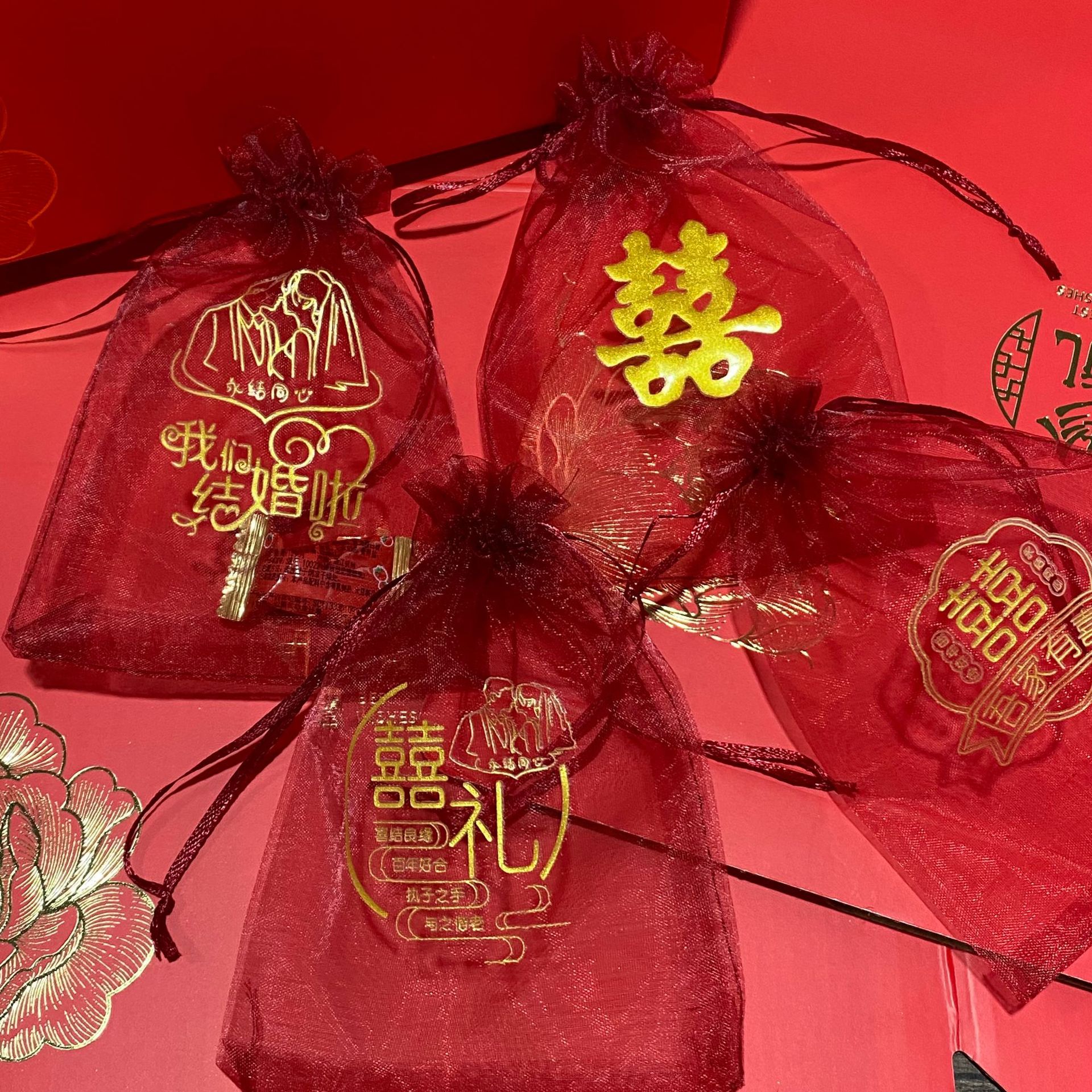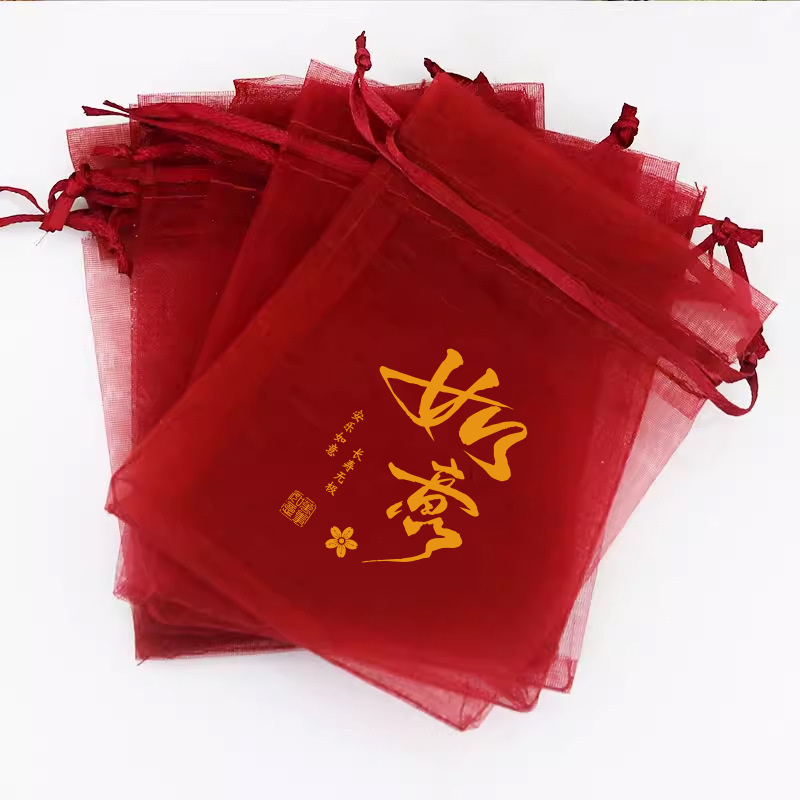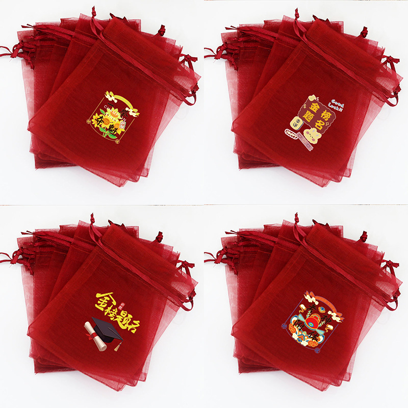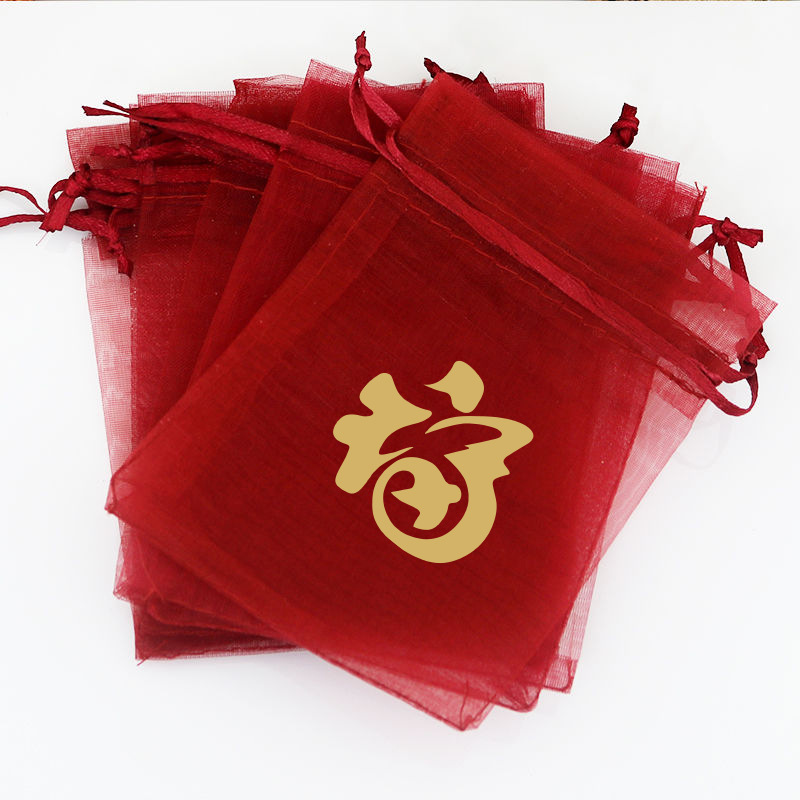 Guofeng 시리즈 선물 가방 사원 축복 땅콩 longan 포장 가방 Changan Shunsui 버건디 메쉬 가방 사탕 가방