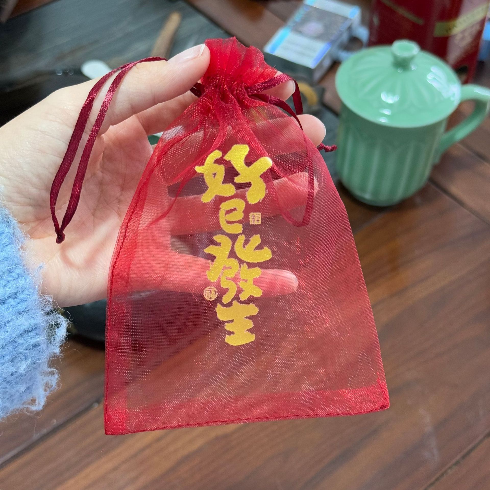• 황금빛 좋은 일이 일어났습니다; 와인 레드 거즈; 9*12cm