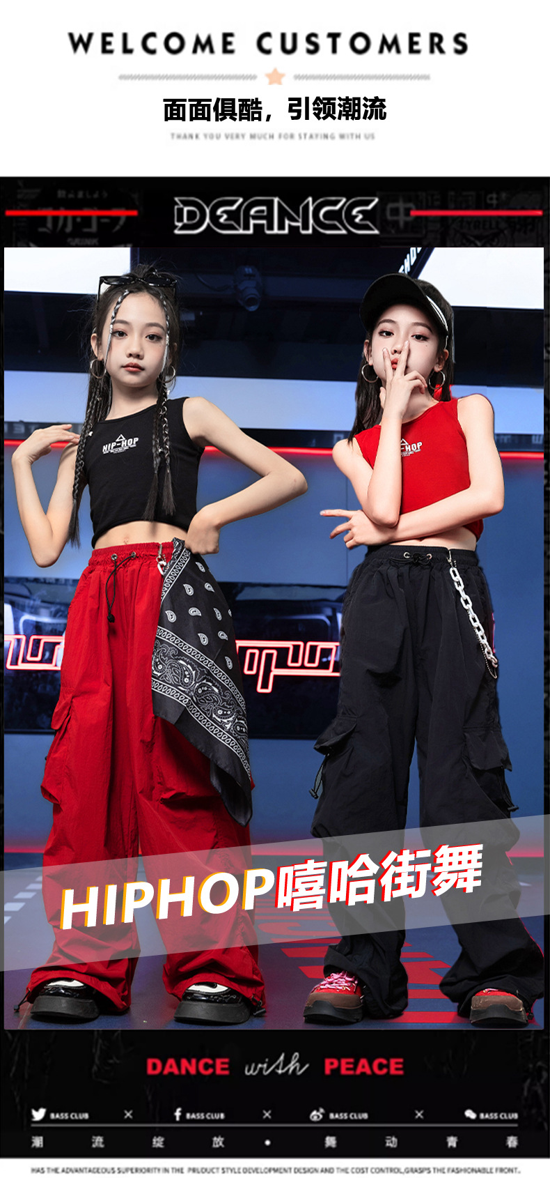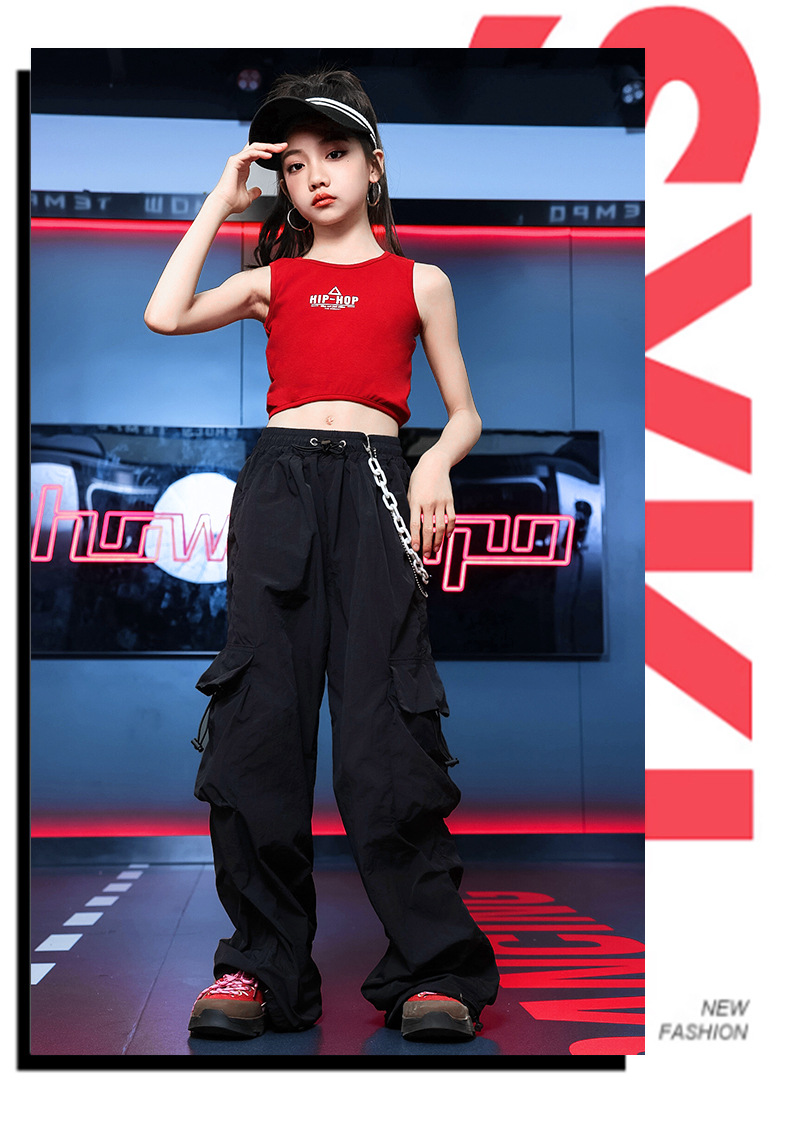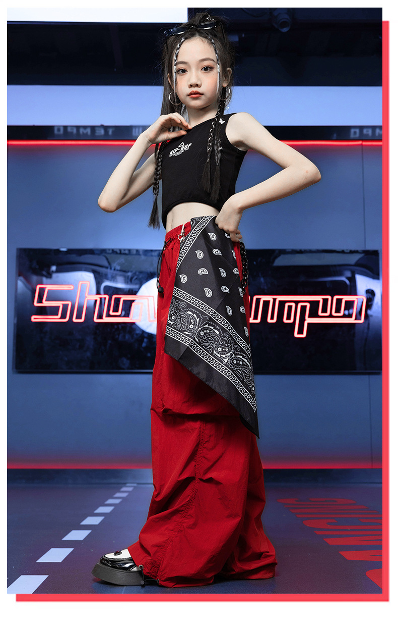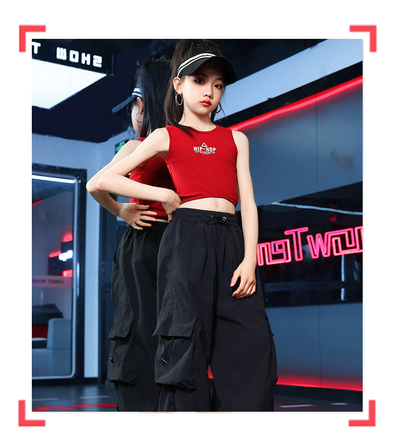 어린이 재즈 댄스 의상 소녀 트렌디 쿨 세트 재즈 스트리트 댄스 공연 의상 여성 그룹 무대 공연 의상