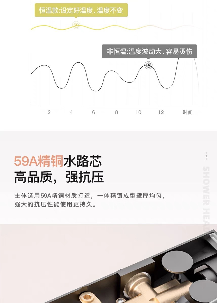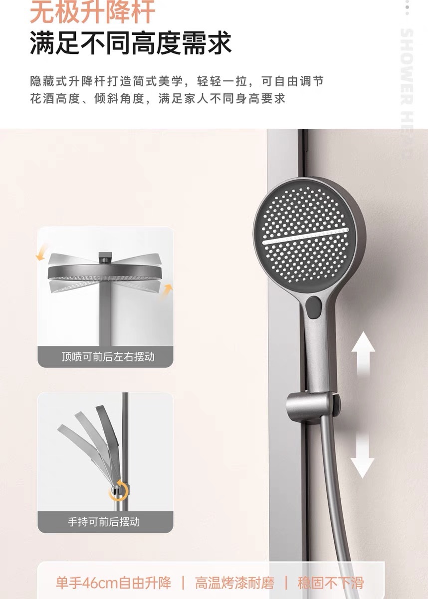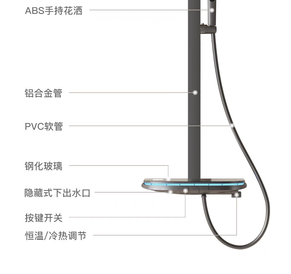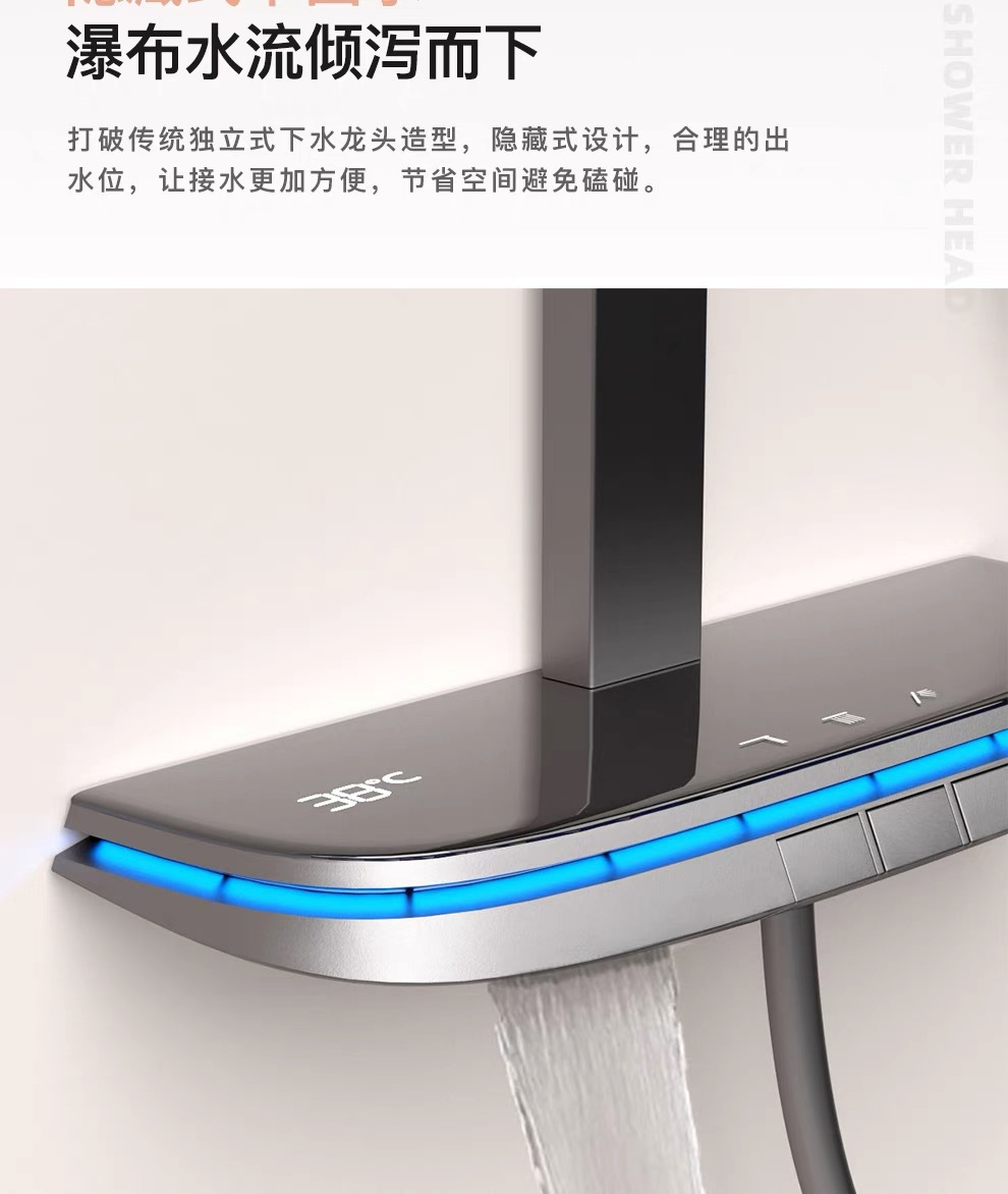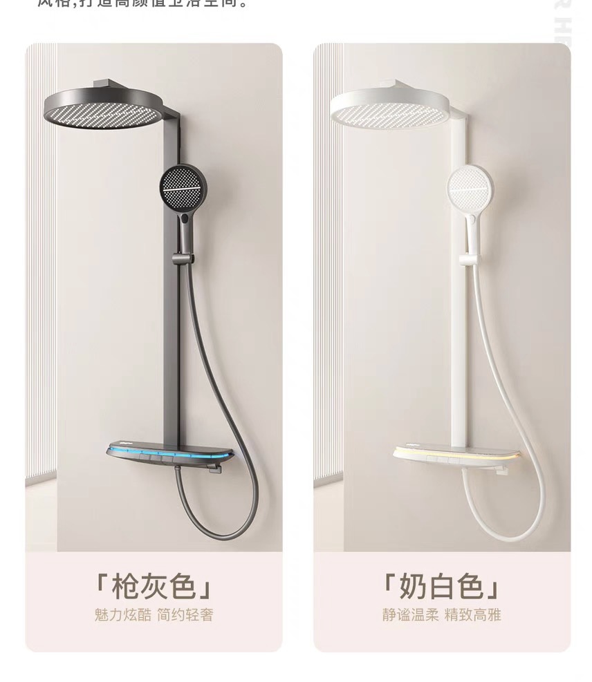 우유 화이트 일정한 온도 피아노 디지털 디스플레이 샤워 세트 큰 저장 분위기 빛 가정용 욕실 목욕 비 부스터