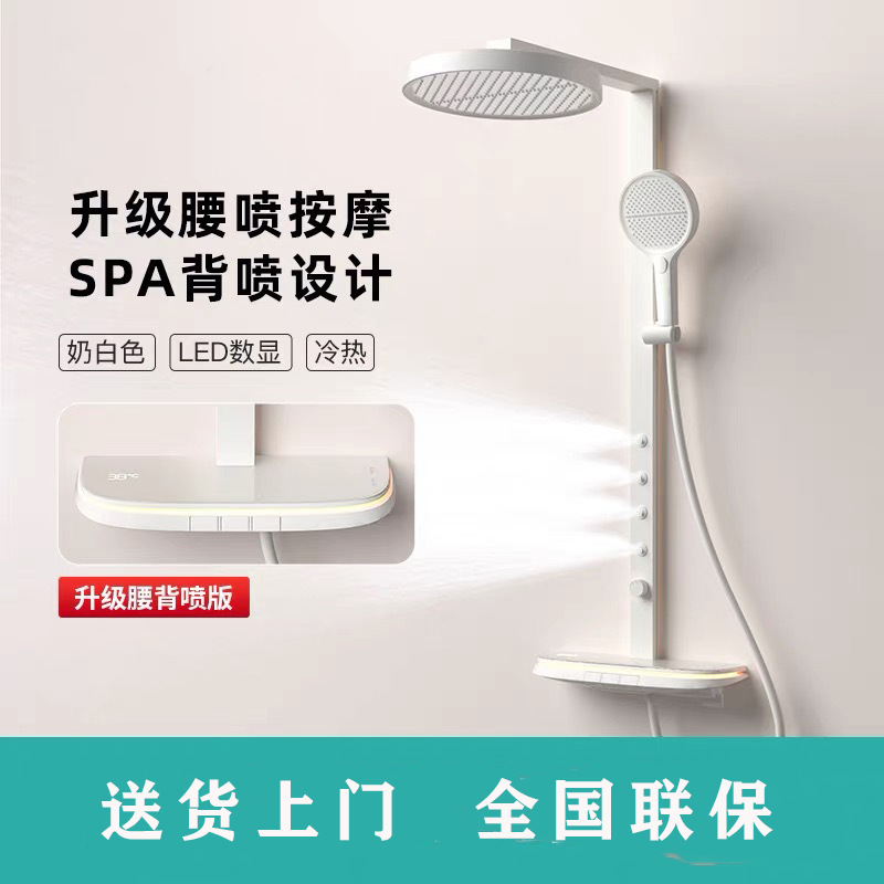 우유 화이트 일정한 온도 피아노 디지털 디스플레이 샤워 세트 큰 저장 분위기 빛 가정용 욕실 목욕 비 부스터스토어 가기