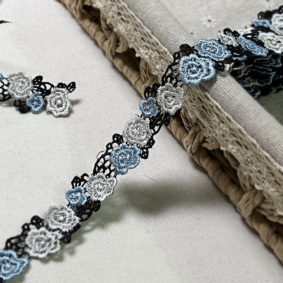 컬러 꽃 수용성 자수 레이스 수제 diy 소재 의류 cheongsam 장식 2.3cm