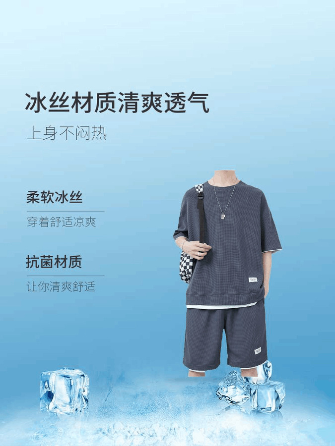 와플 캐주얼 세트 남자 여름 아이스 실크 반팔 티셔츠 남성복 세트 잘 생긴 플러스 사이즈 스포츠 세트스토어 가기