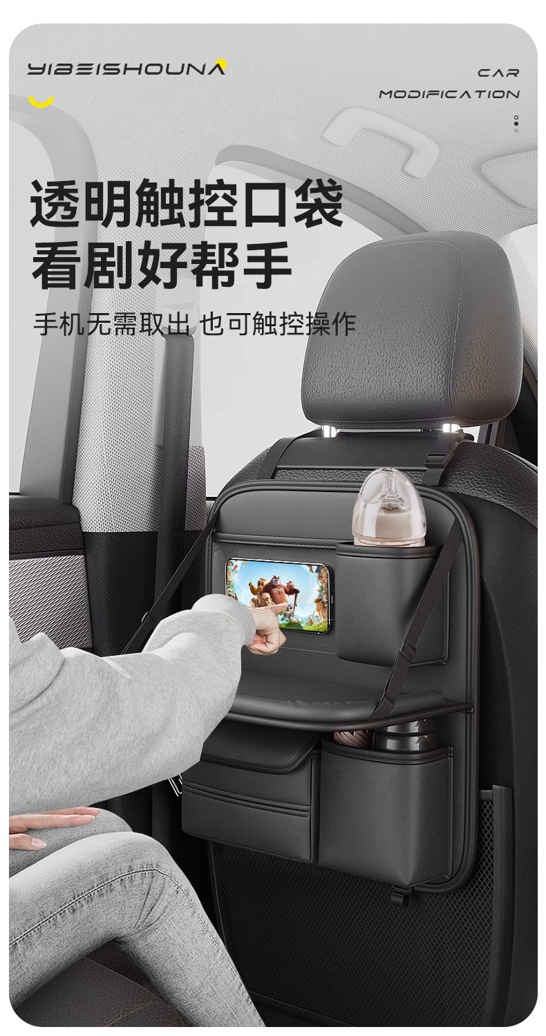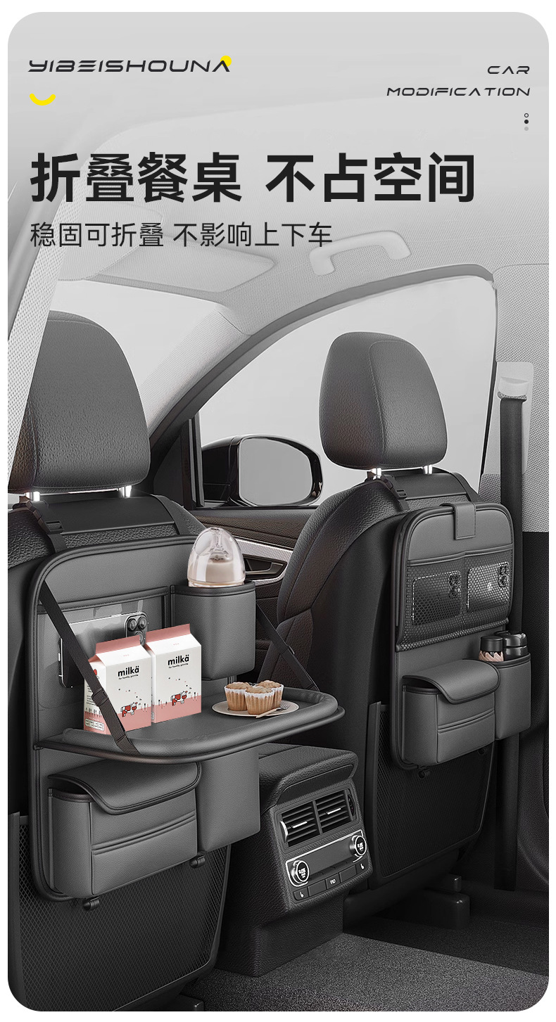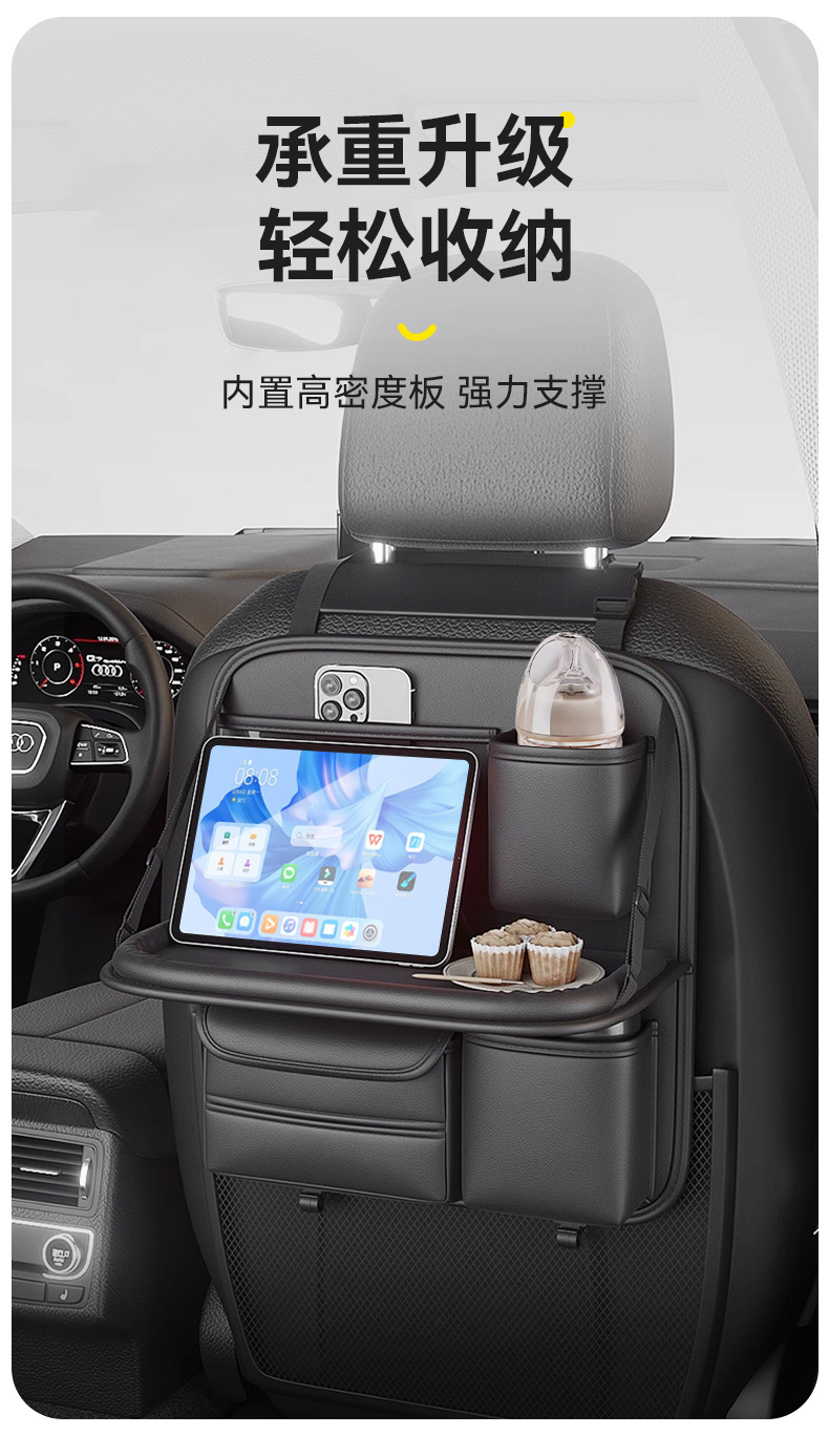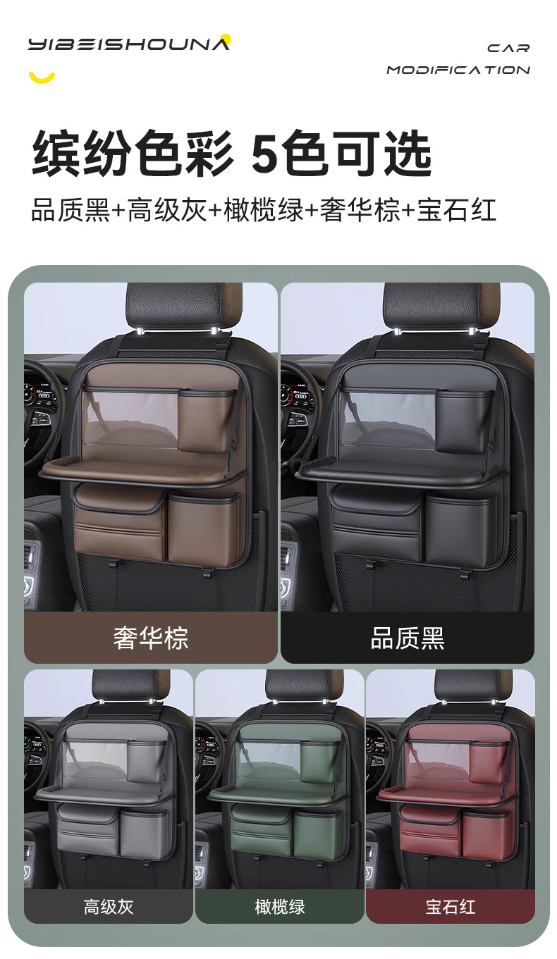 맞춤형 카시트 등받이 수납 가방, 카시트 등받이, 소형 차량용 테이블, 뒷좌석 어린이 접이식 수납 선반