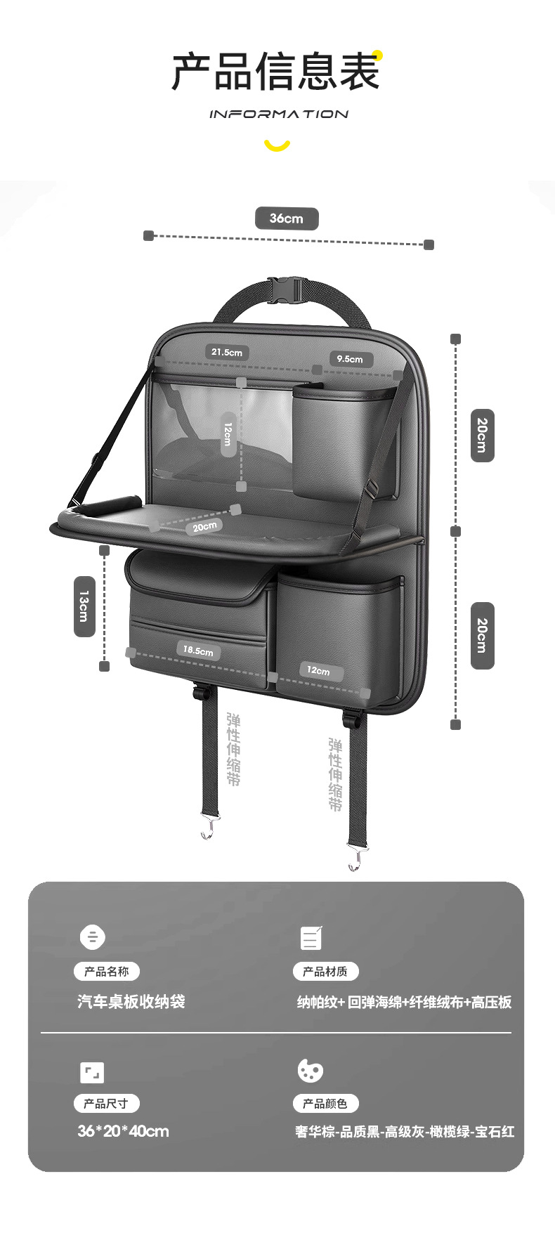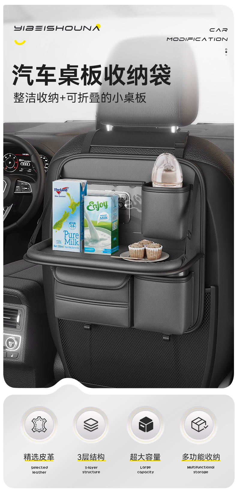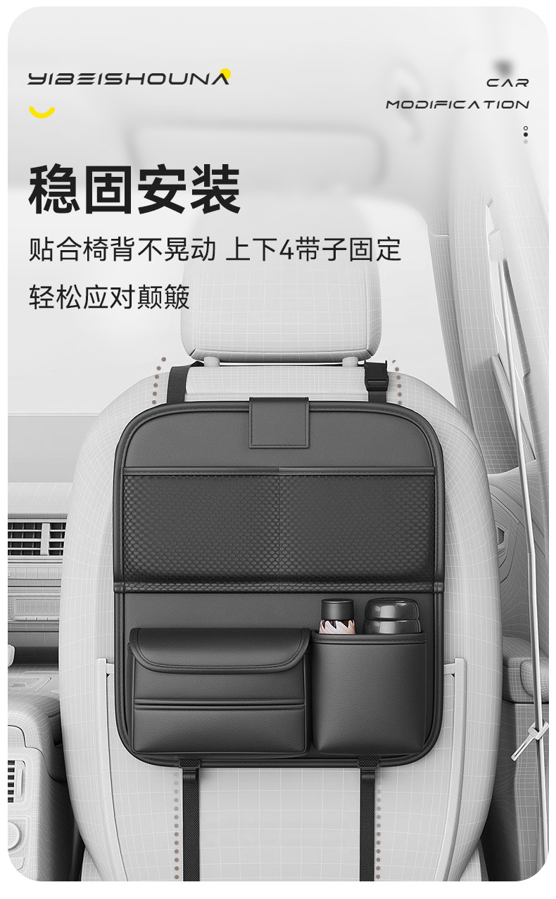맞춤형 카시트 등받이 수납 가방, 카시트 등받이, 소형 차량용 테이블, 뒷좌석 어린이 접이식 수납 선반