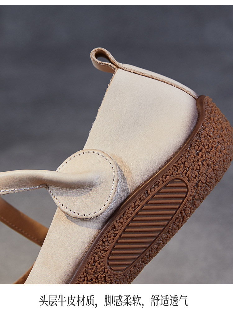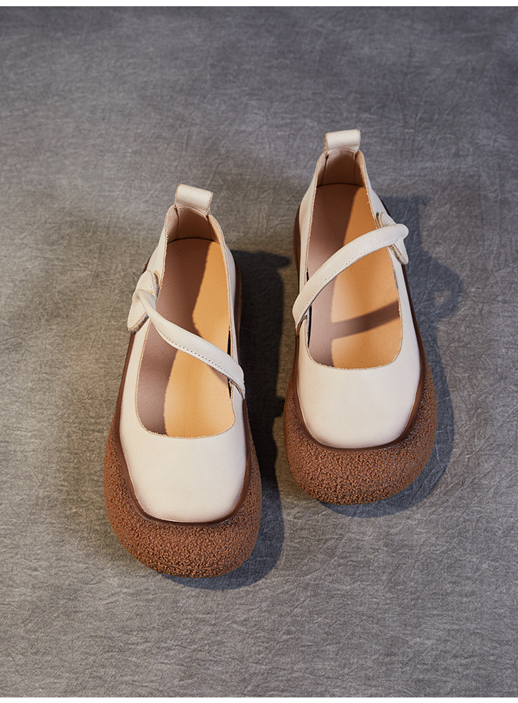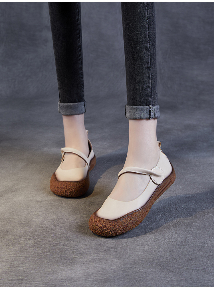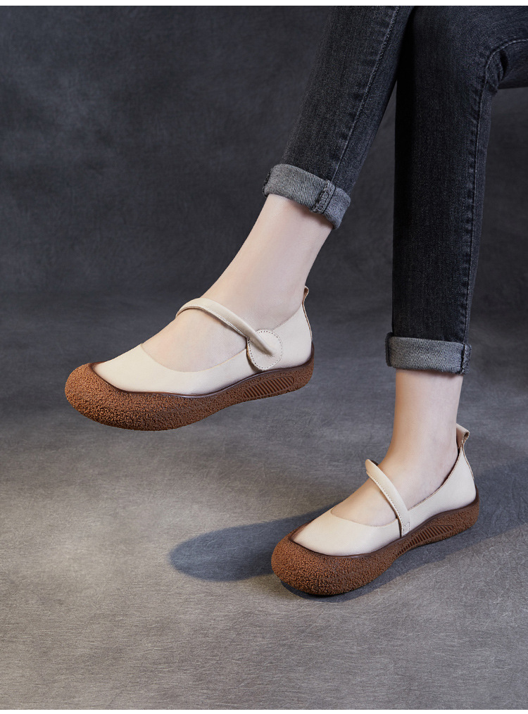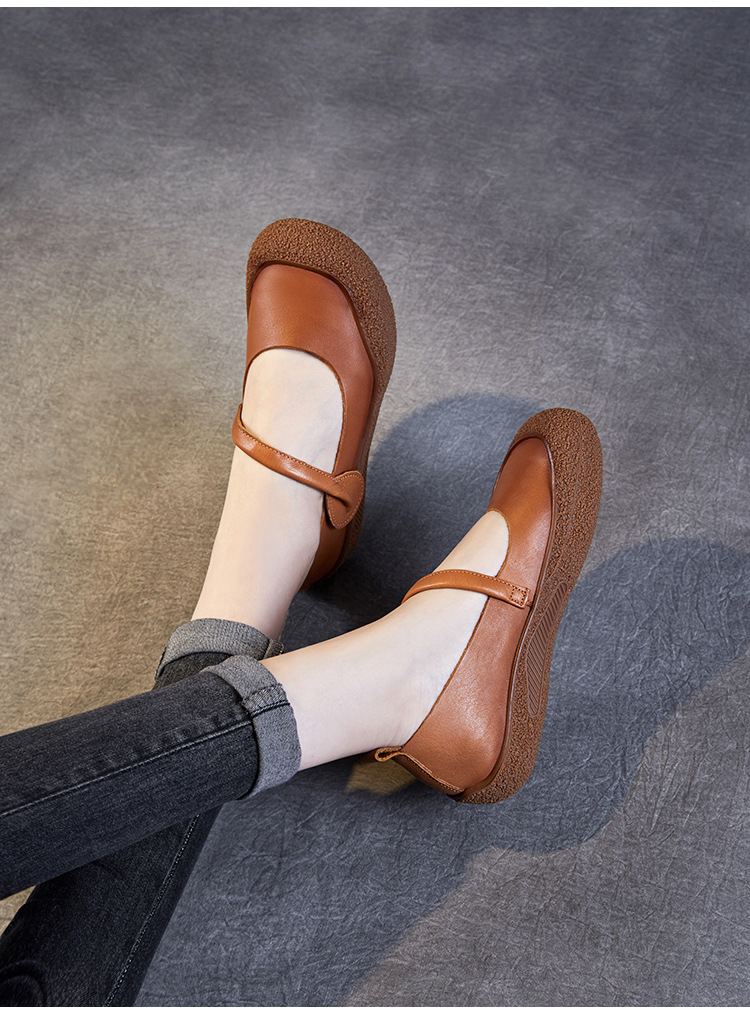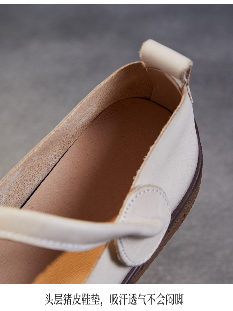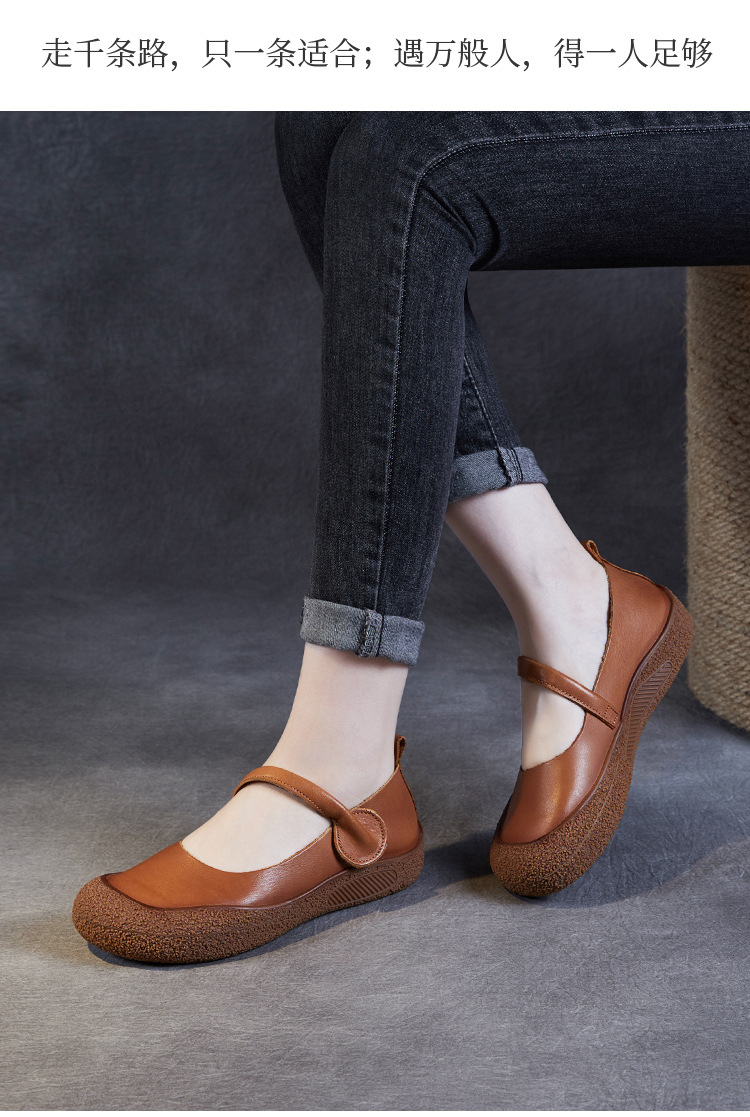 여성 진짜 소 가죽 신발 2024 봄과 가을 새로운 메리 제인 수제 복고풍 캐주얼 플랫 힐 부드러운 바닥 얕은 입 싱글 레이어 신발스토어 가기
