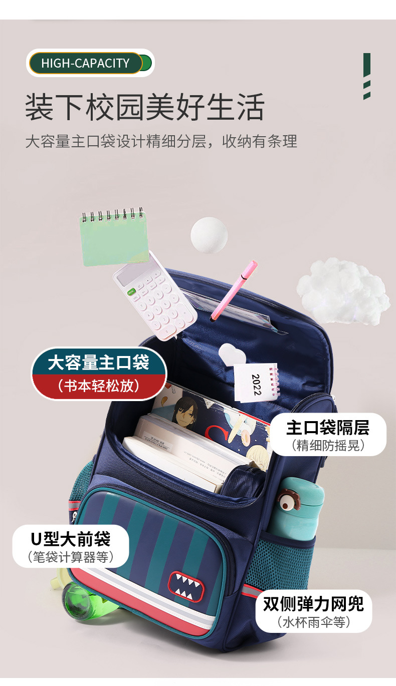 만화 대용량 통기성 스쿨 백 초등학교 소년 어린이 더블 배낭 릿지 보호 경량 착용 방지 소형 배낭