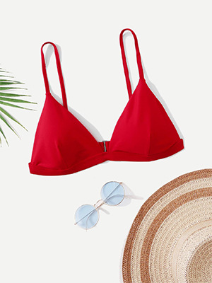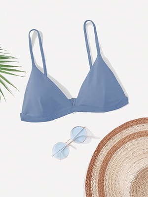 [4 색상 옵션] 새로운 단색 비키니 분할 수영복 싱글 탑 섹시한 깊은 V 스트랩 Huludao 수영복스토어 가기