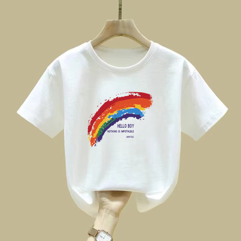 여자 반소매 티셔츠 순면 2024 새 여름 핑크 아동복 서양식 옷 중대형 어린이 반소매스토어 가기