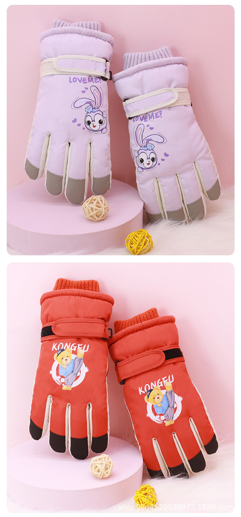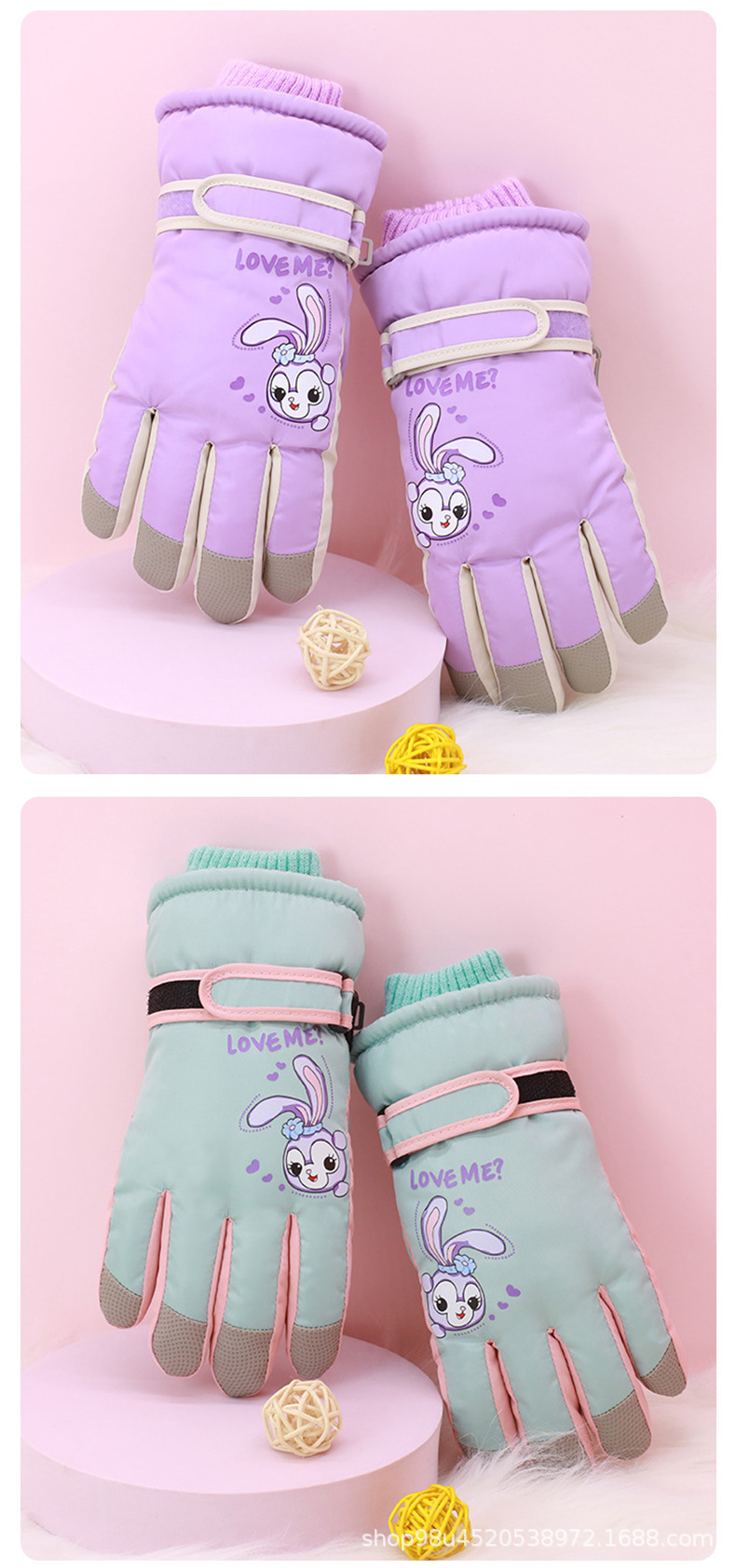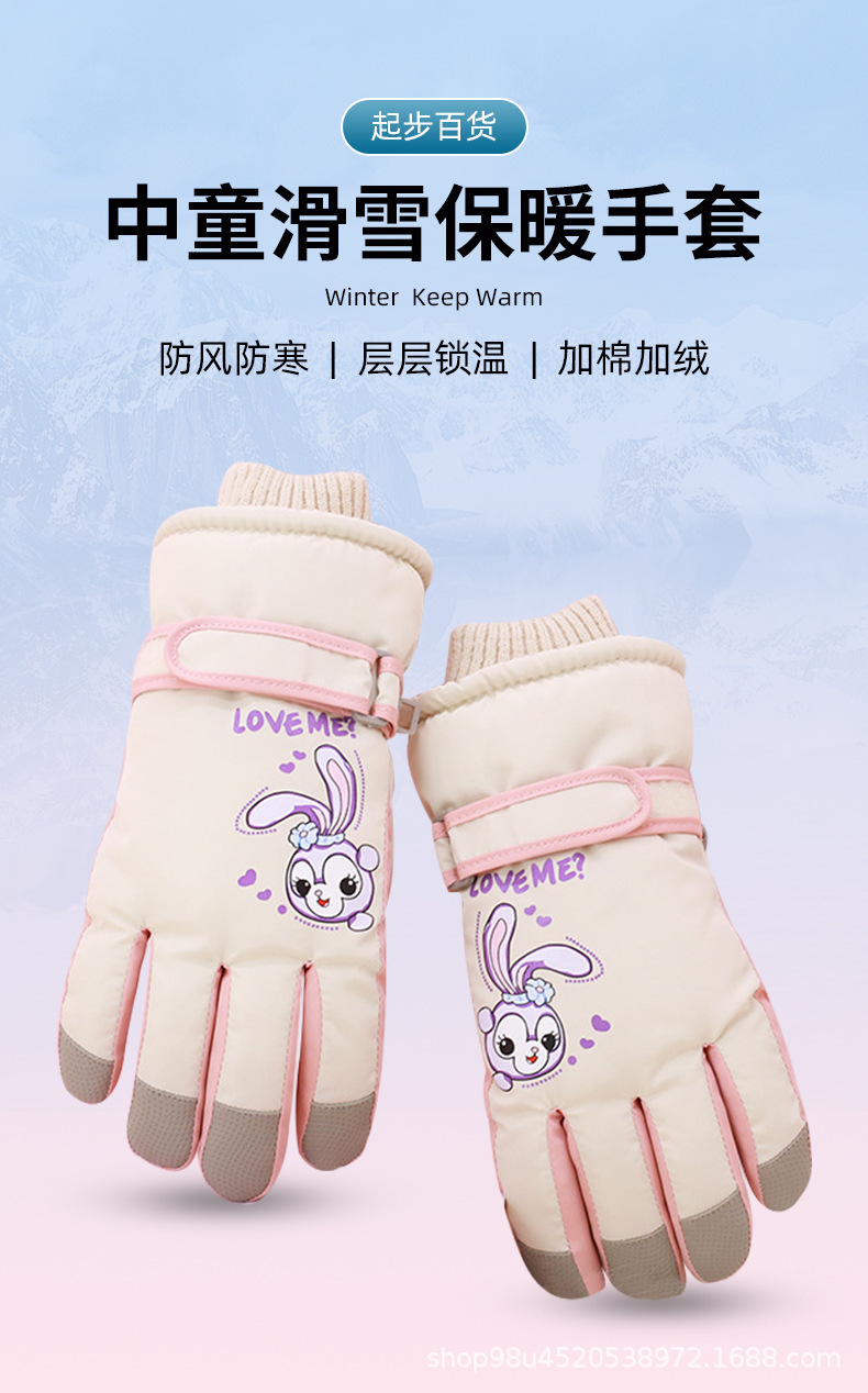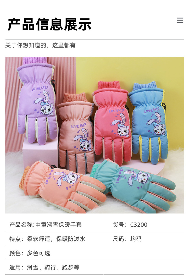 소스 제조 업체 C3200 어린이 만화 토끼 따뜻한 스키 장갑 도매 8-10 세
