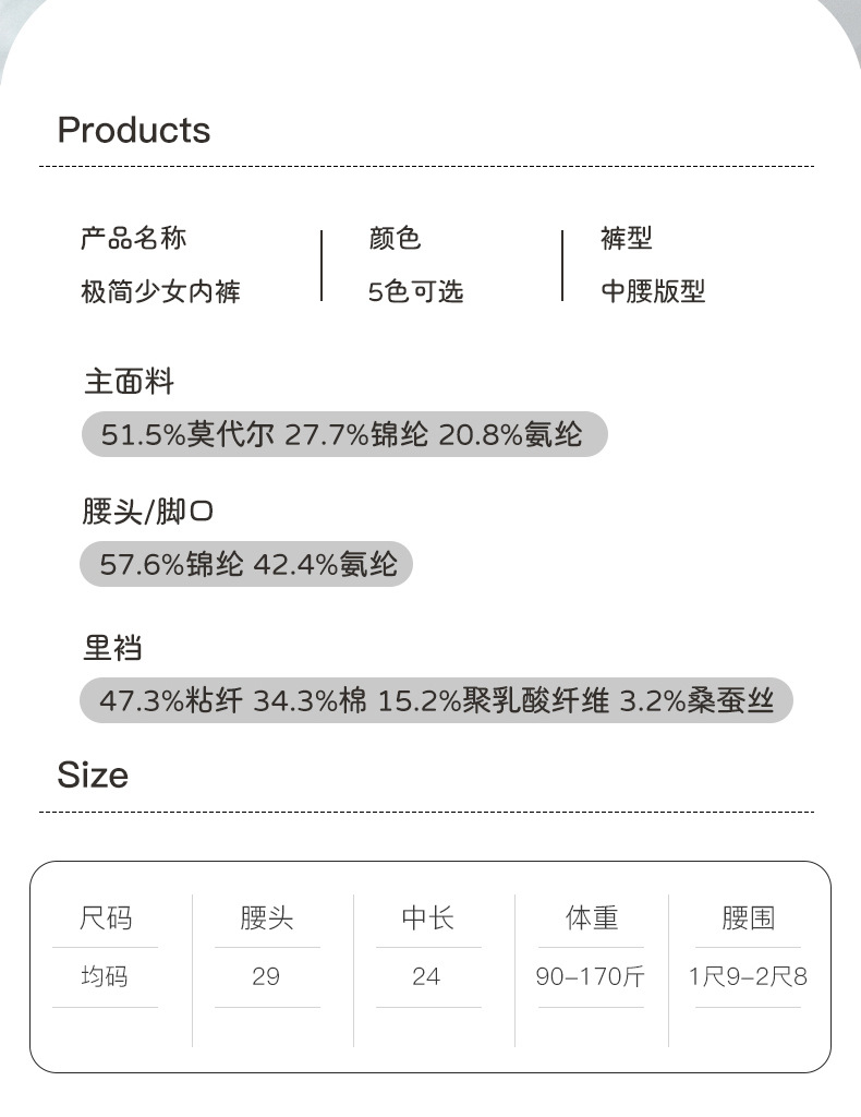 100 모달 부드러운 피부 친화적 인 속옷 여성용 미드 웨이스트 뽕나무 실크 7A 항균 크로트 추적없는 소녀 브리프