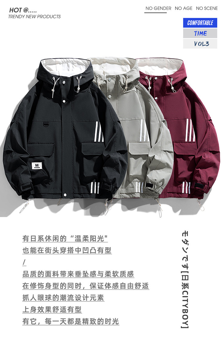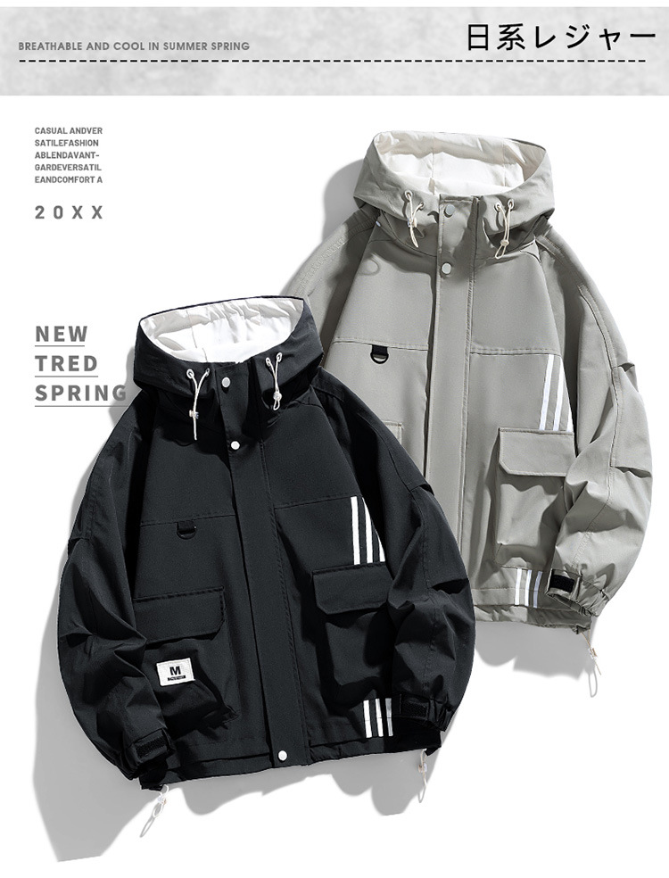 가을과 겨울 작업 코트 남자의 유행 잘 생긴 느슨한 홍콩 스타일 방수 재킷 플러스 사이즈 캐주얼 남성 자켓