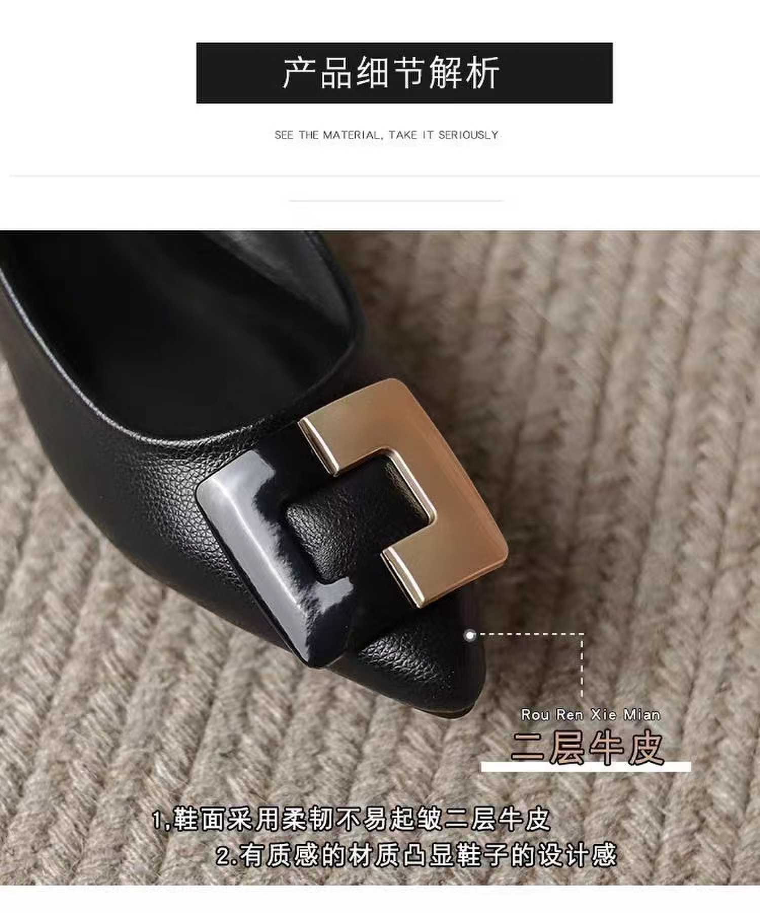 진짜 부드러운 가죽 플랫솔 직장용 신발 여름 여성 가죽 신발 뾰족한 앞코 부드러운 밑창 직장인용 빅사이즈 신발 트렌디하고 통기성 좋음스토어 가기